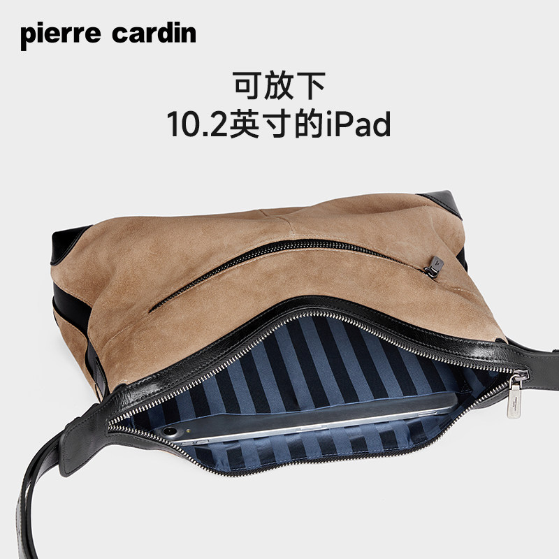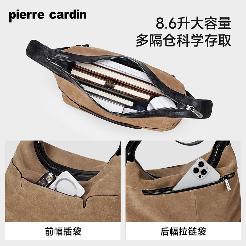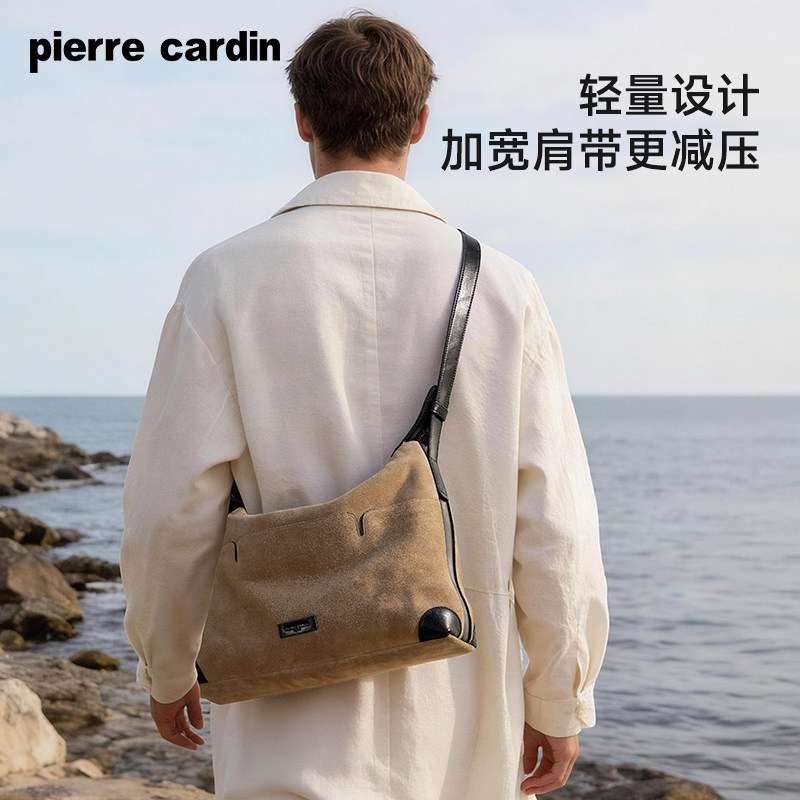 【真皮】皮尔卡丹男包简约休闲男士麂皮斜挎包通勤牛皮单肩包女款