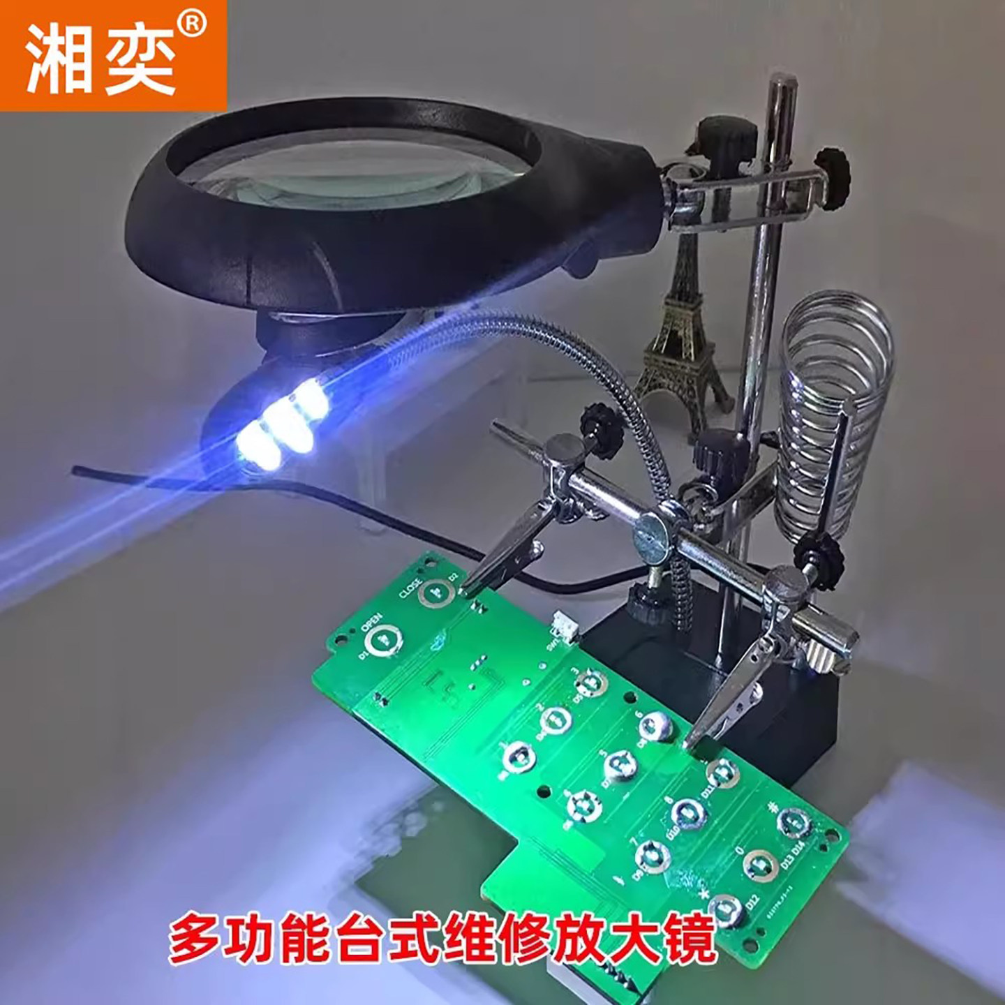 湘奕高清正品台式放大镜维修用20倍高清带电源带灯支架10多功能电焊玻璃镜面手机主板维修夹具台灯扩大镜1000