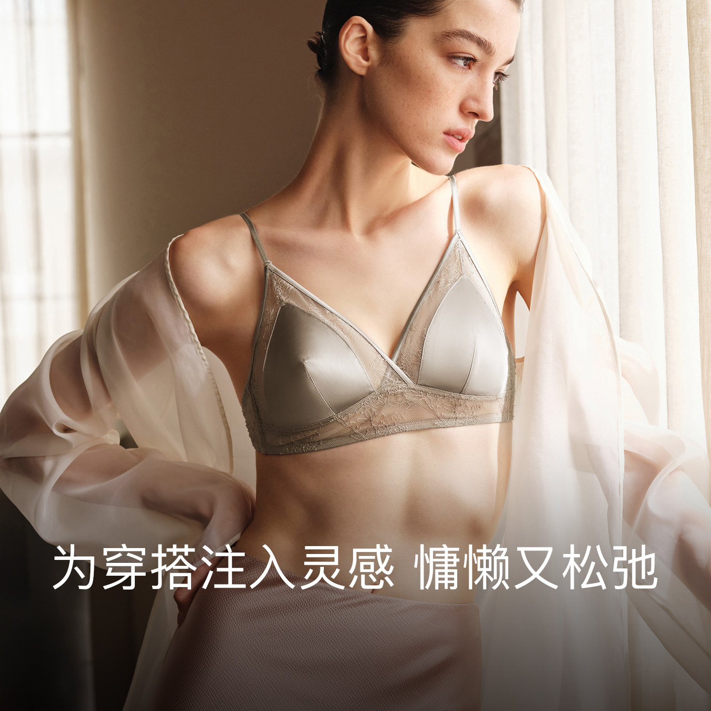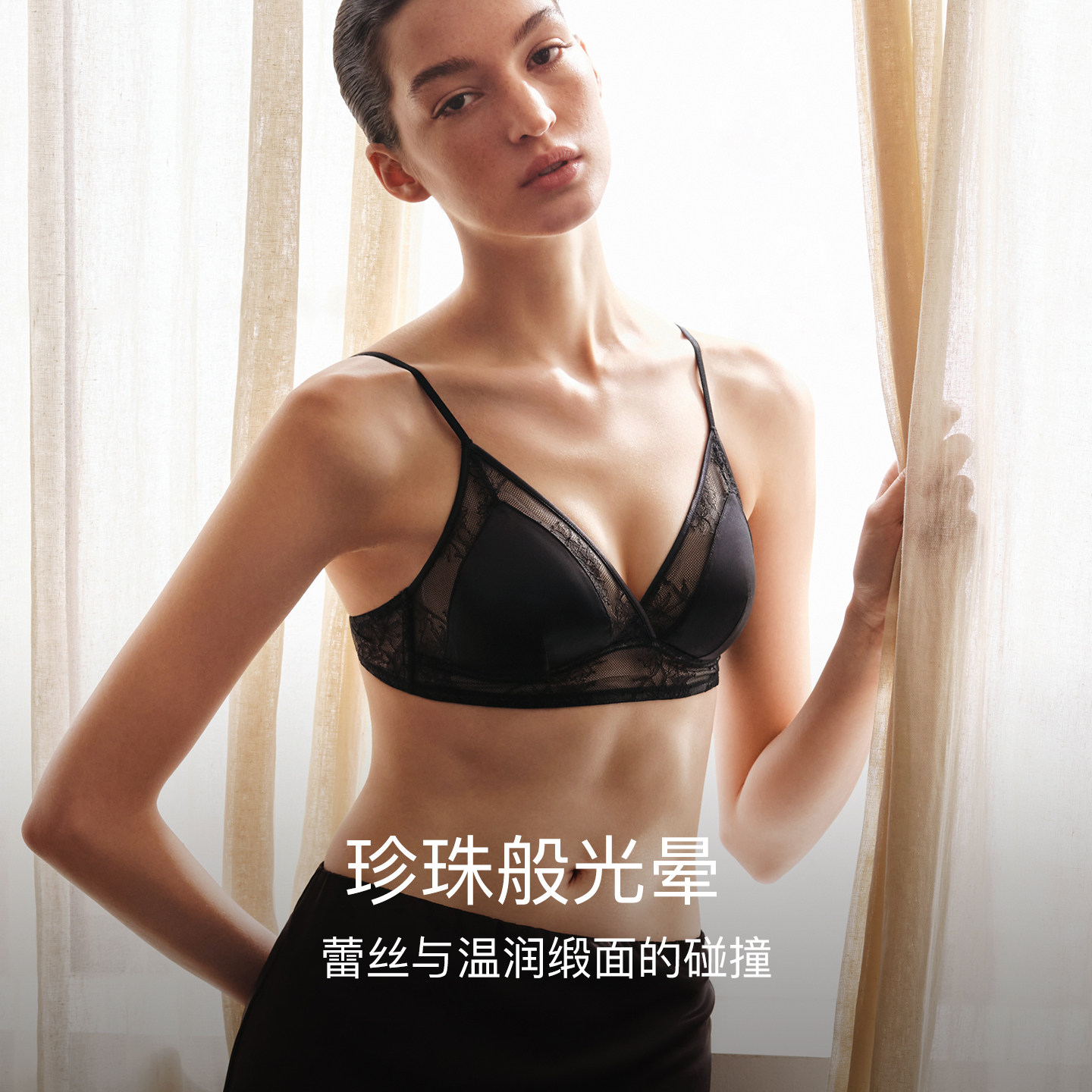 ubras缪斯系列法式三角杯性感蕾丝内衣女无痕缎面低背文胸罩套装