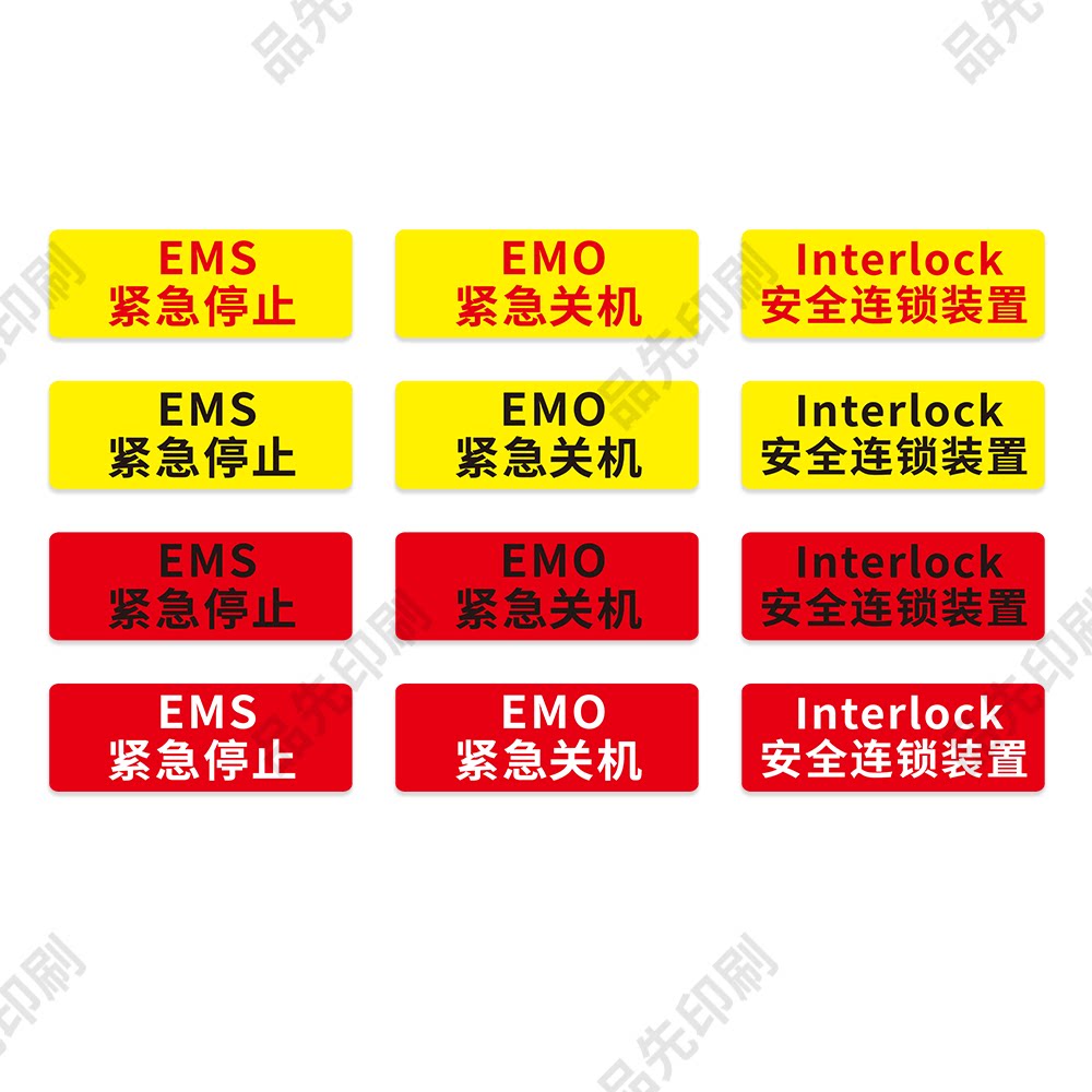 interlock安全连锁装置标识EMS紧急停止标签EMO紧急关机标志贴纸