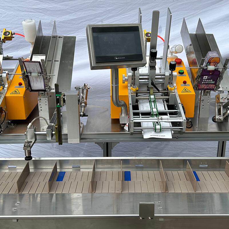 义乌小商品日用品热收缩膜包装贴标装盒设备发卡贴标装盒机