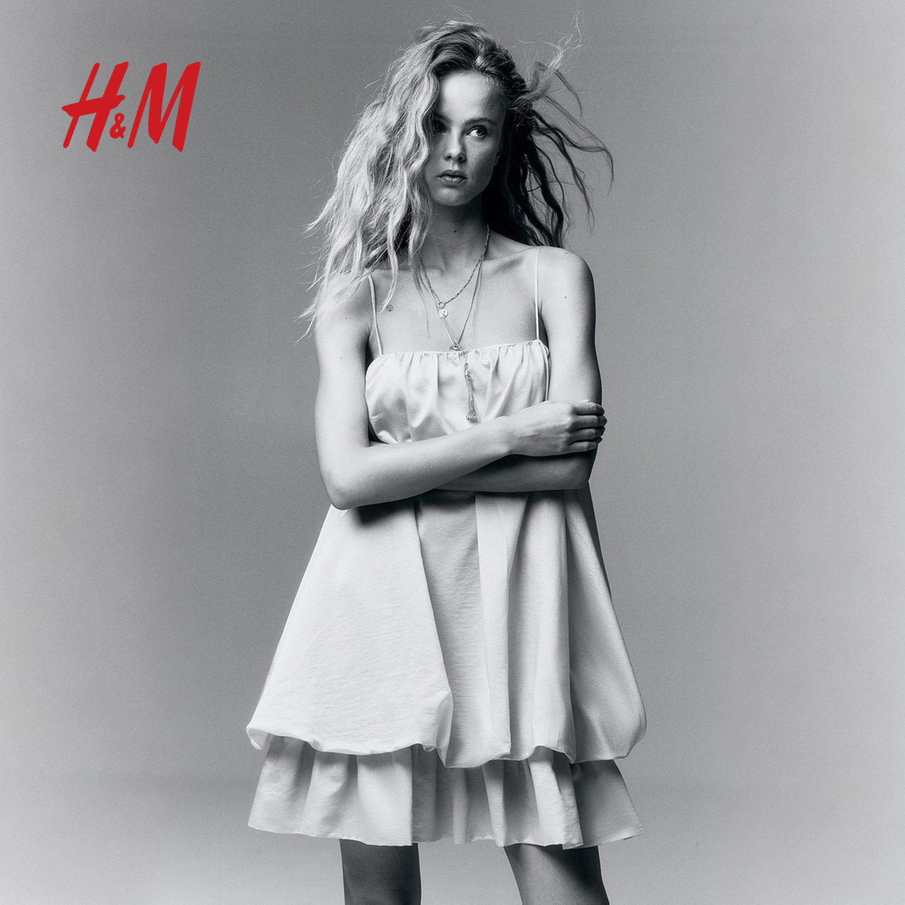 HM女装无领连衣裙春季约会穿搭泡泡花苞裙连身裙1289445