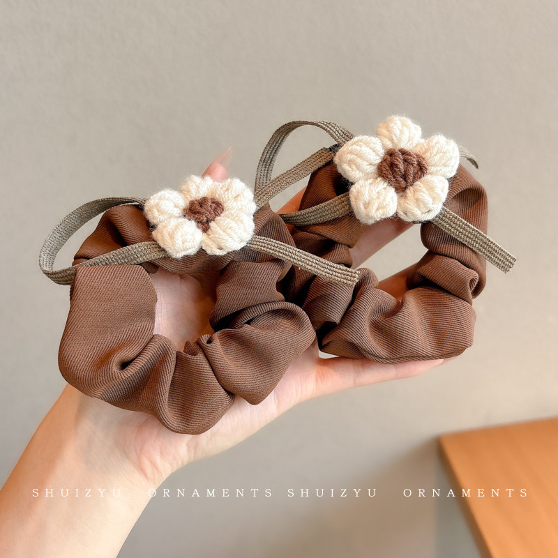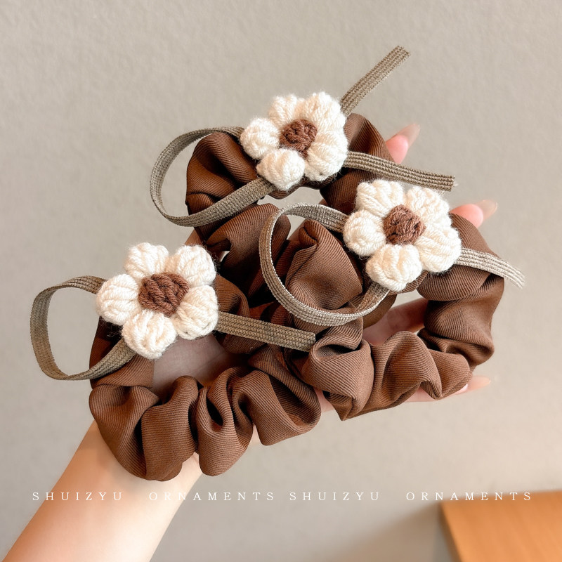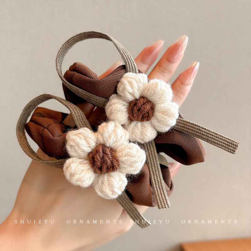针织花朵蝴蝶结飘带大肠发圈女秋冬扎头发皮筋发绳高弹力头绳头饰