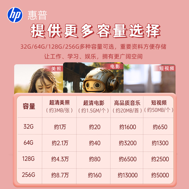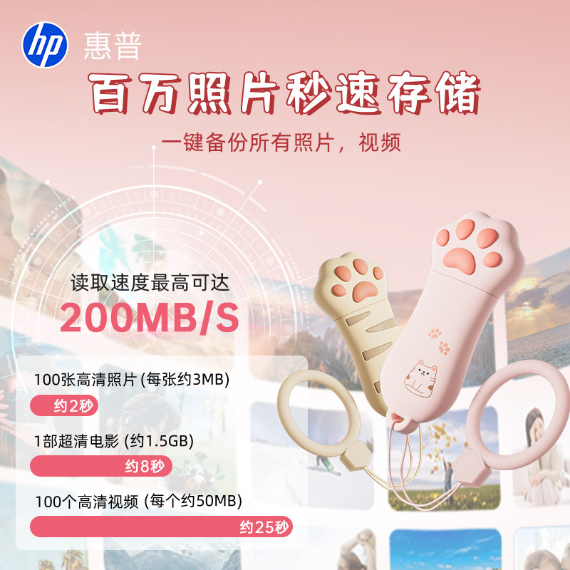 HP惠普正品128g可爱猫爪U盘大容量女学生电脑两用优盘官方旗舰店