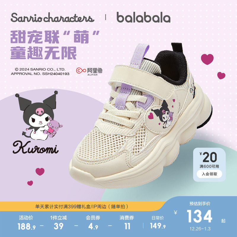 库洛米巴拉巴拉童鞋女童运动鞋老爹鞋儿童秋冬宝宝2025三丽鸥鞋子
