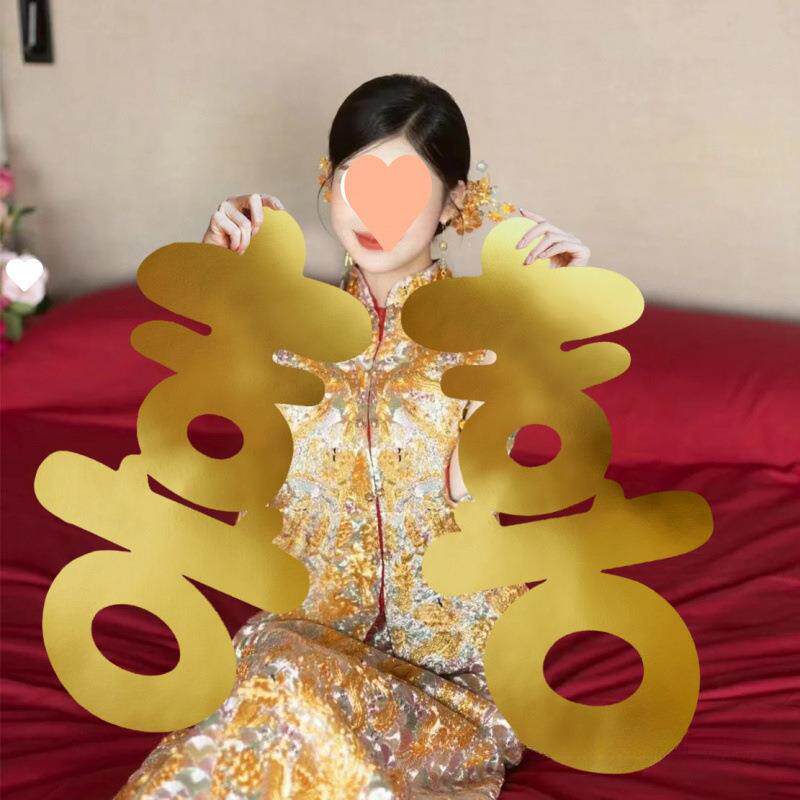 KT板金色喜字结婚装饰大囍字订婚礼婚房布置新娘晨袍拍照道具
