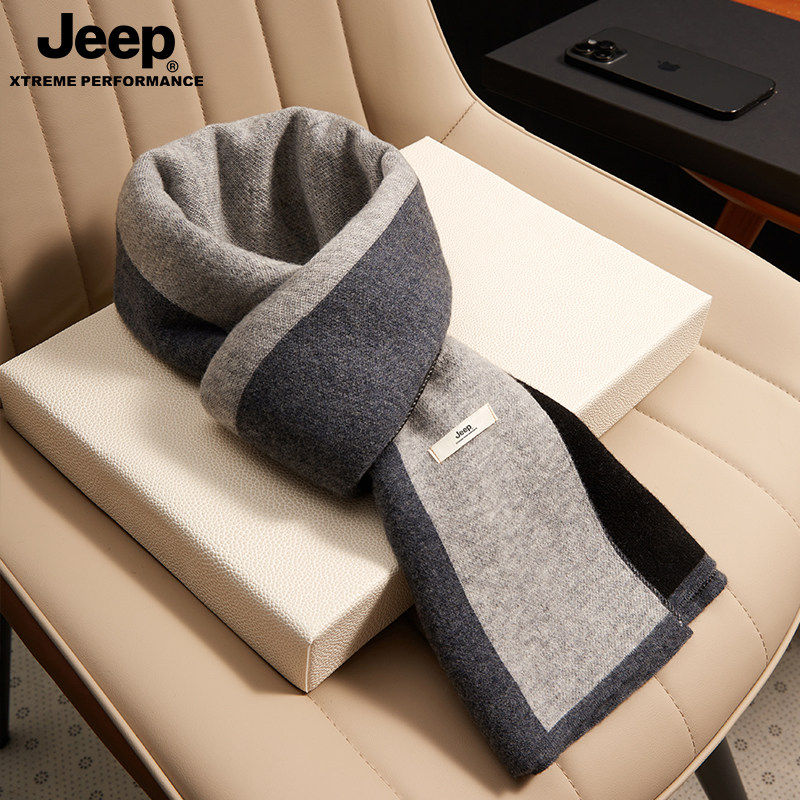 jeep吉普围巾秋冬新款针织加厚柔软男士保暖围脖礼盒装送长辈礼物