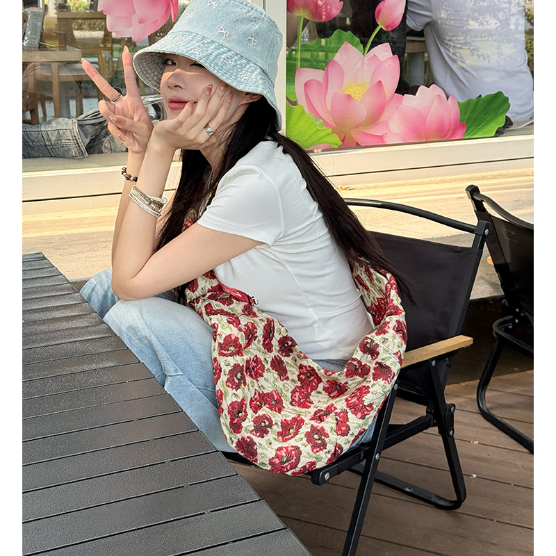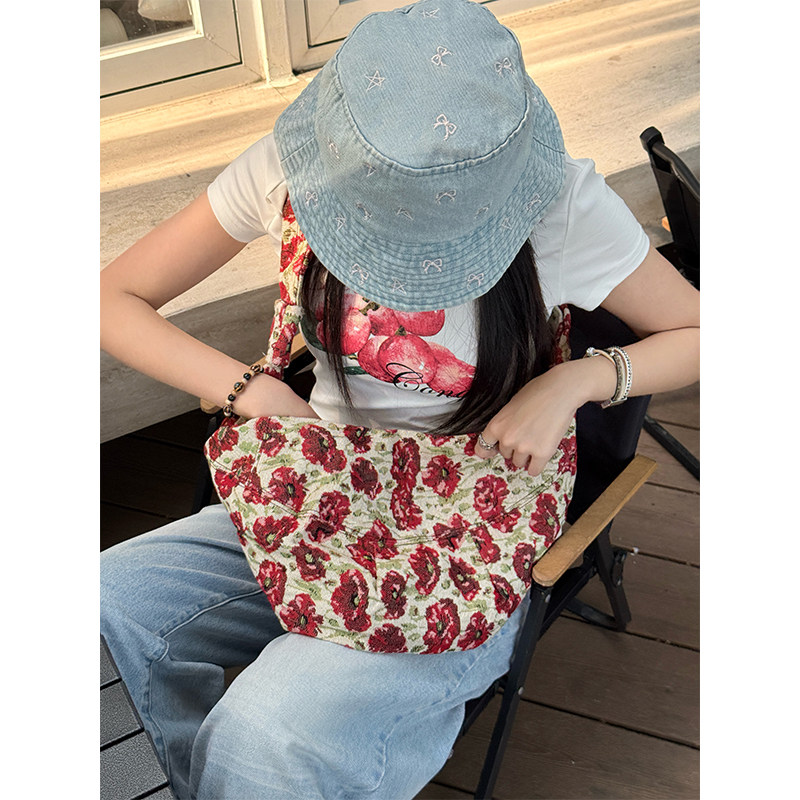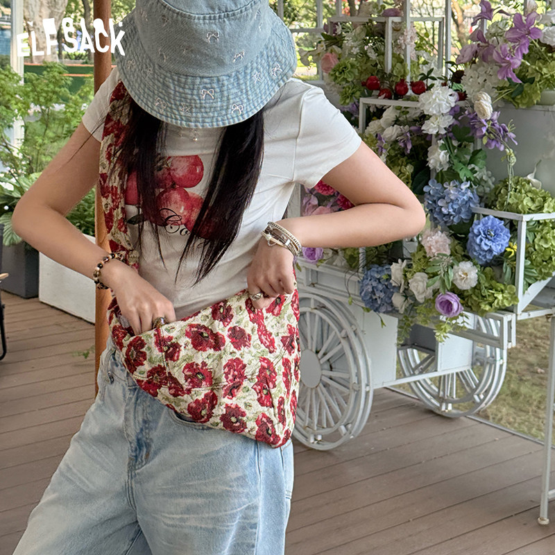 妖精的口袋复古碎花大容量斜跨包2025年新款韩系设计感饺子大包