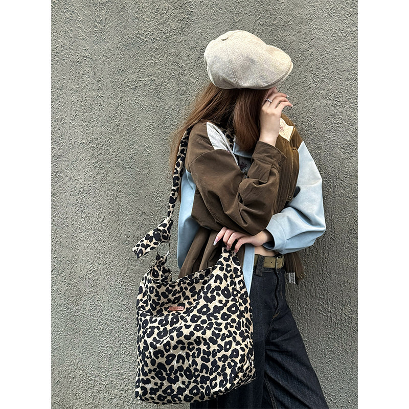 妖精的口袋复古豹纹大容量单肩包女2025年秋冬新款设计感斜挎包包