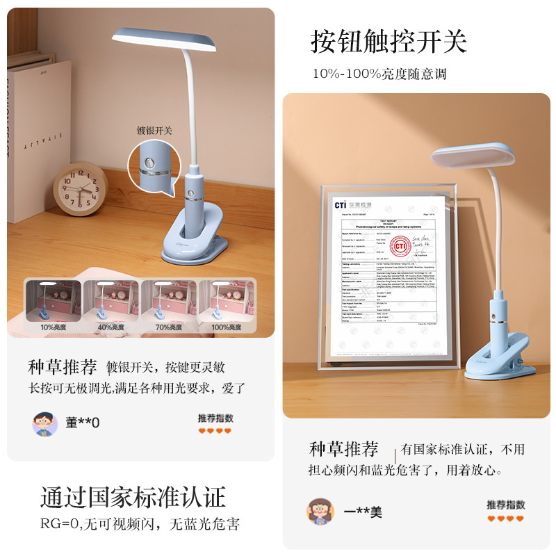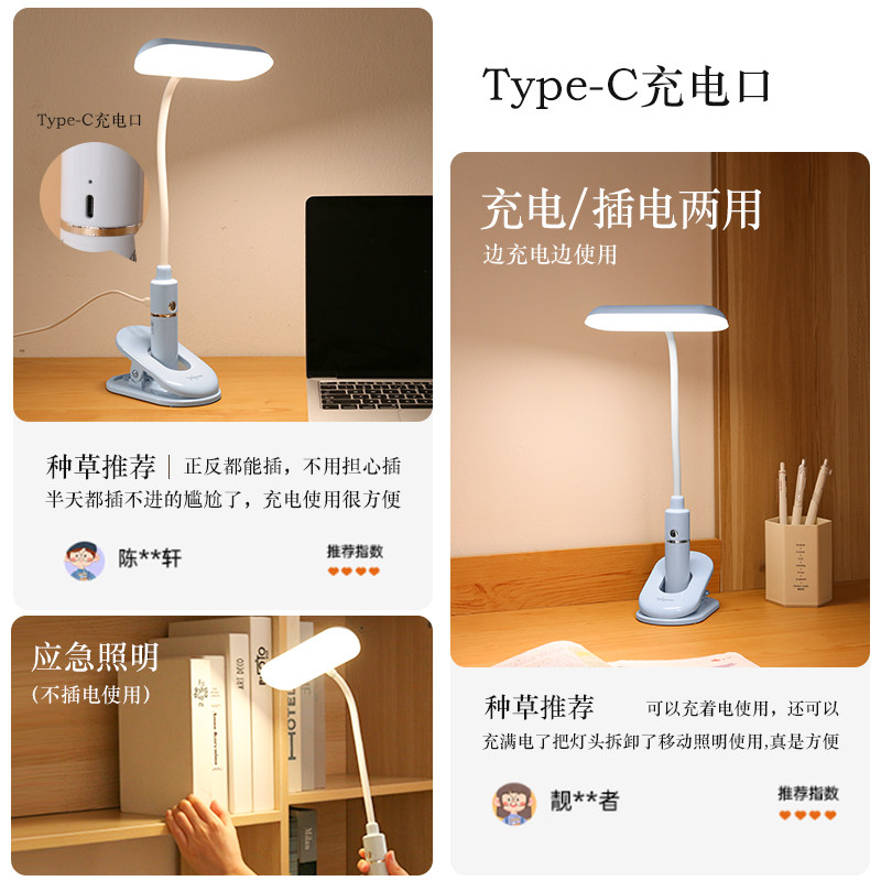 优乐明夹子可夹式充电台灯宿舍大学生阅读床头灯护眼学习专用卧室