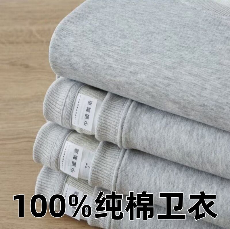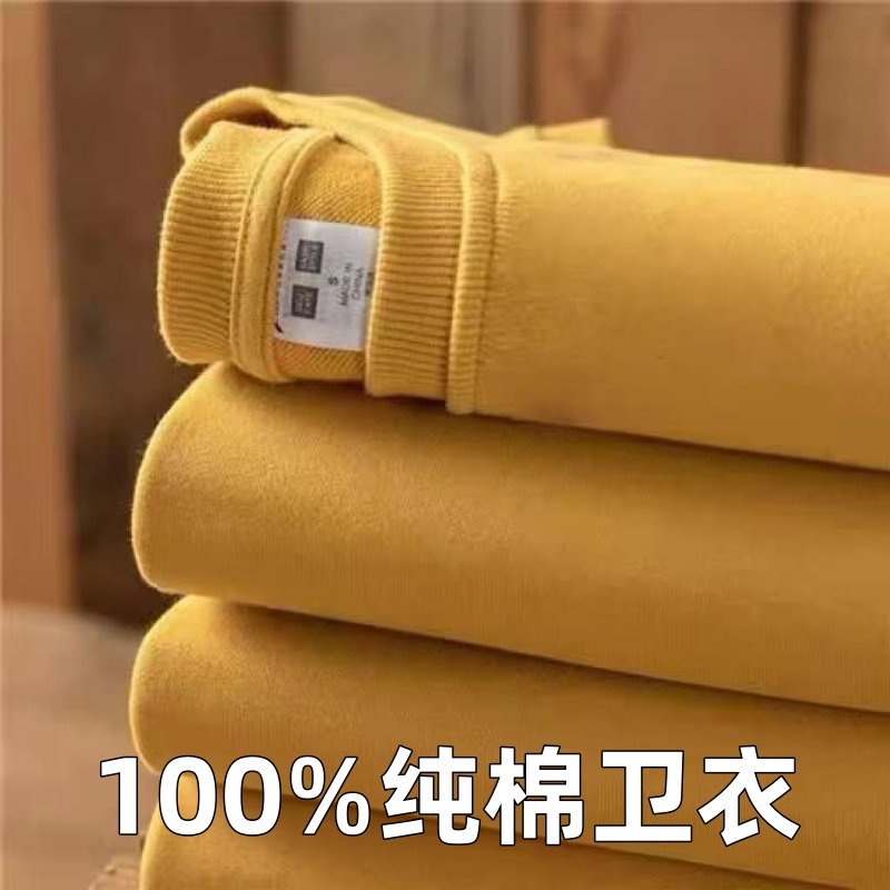 重磅美式复古毛圈布纯色圆领卫衣宽松慵懒风运动上衣纯棉长袖卫衣