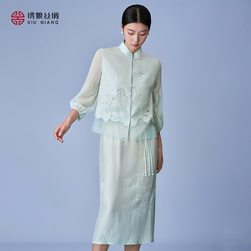 绣娘丝绸真丝雪纺气质上衣女新款轻奢高级感桑蚕丝上衣长袖中国风