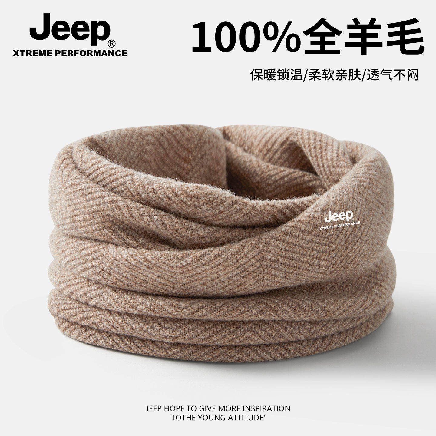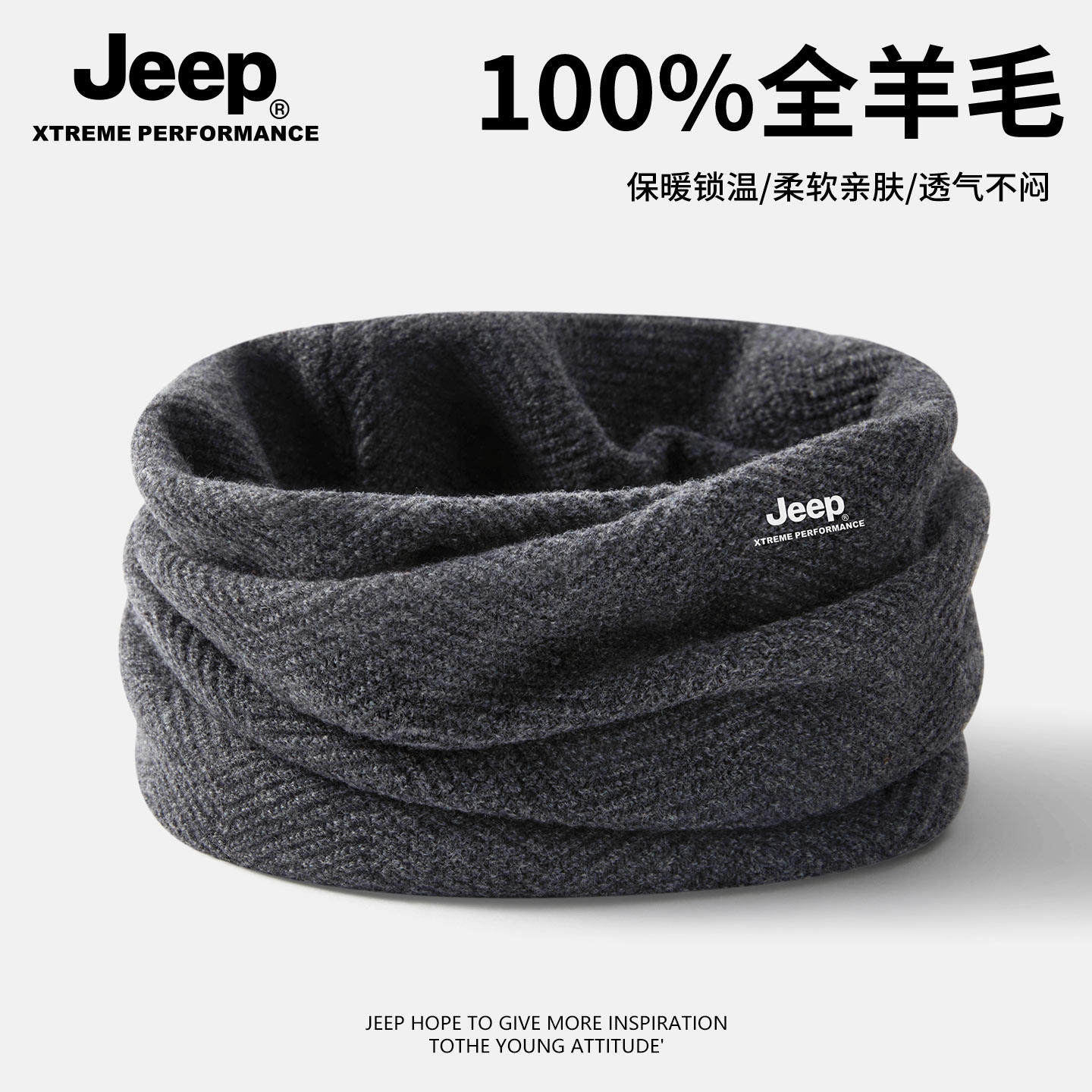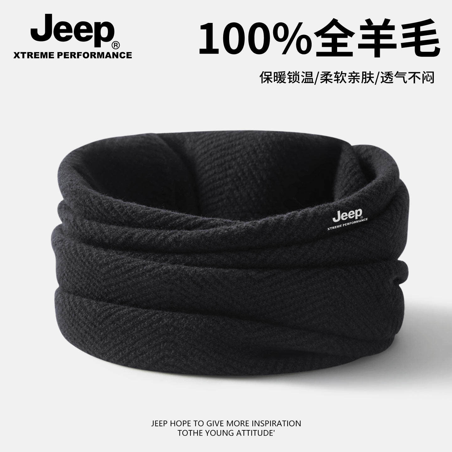 Jeep吉普100%羊毛围脖冬季男士户外骑行防风保暖面罩加厚防寒围巾