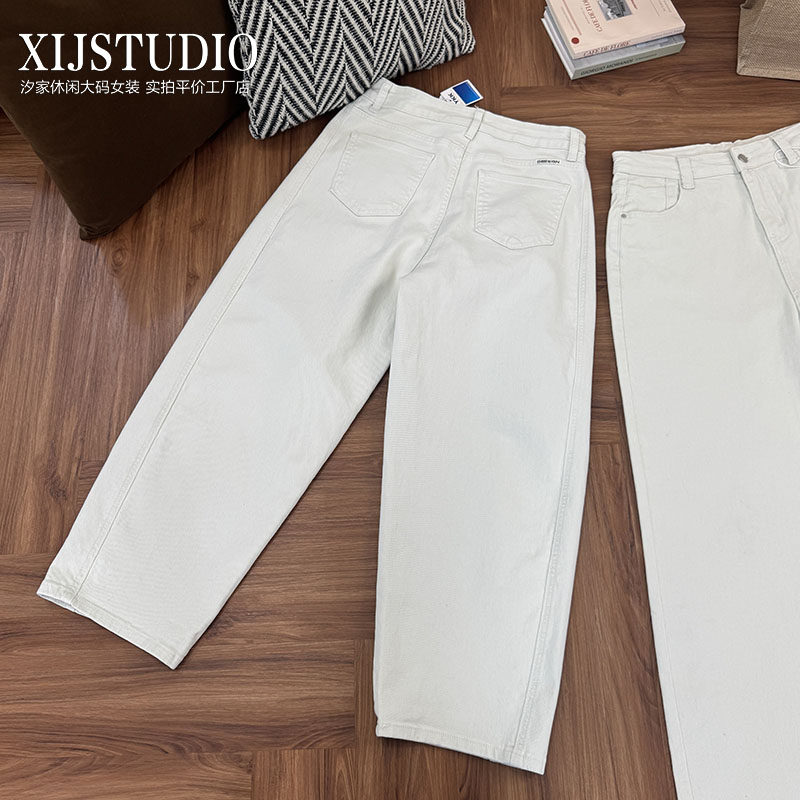 汐家女裤 春季新款大码高腰宽松阔腿拖地牛仔裤浅色系九分弯刀裤