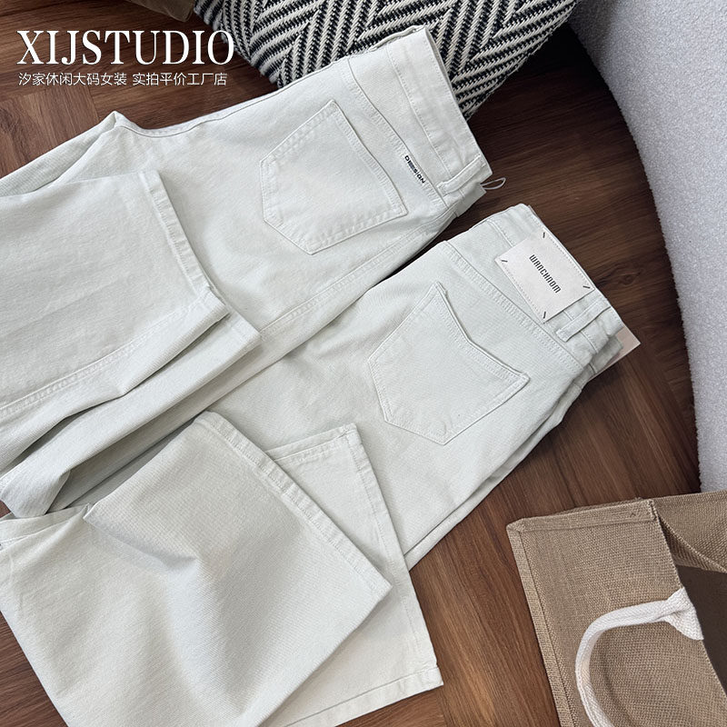 迅町胖mm加肥100-200斤梨形大码女装牛仔直筒裤弹力宽松版遮肉裤