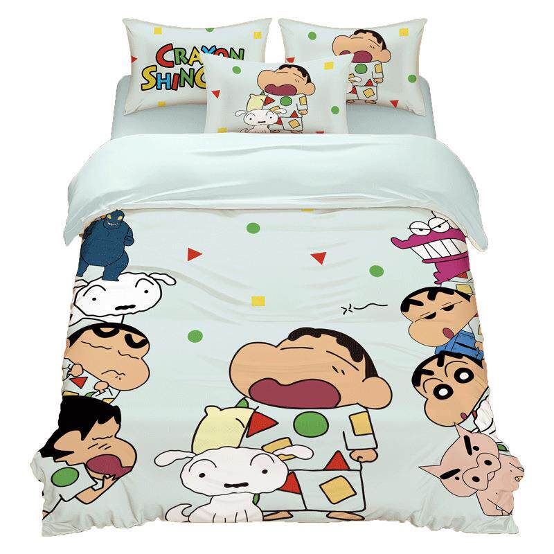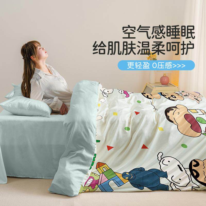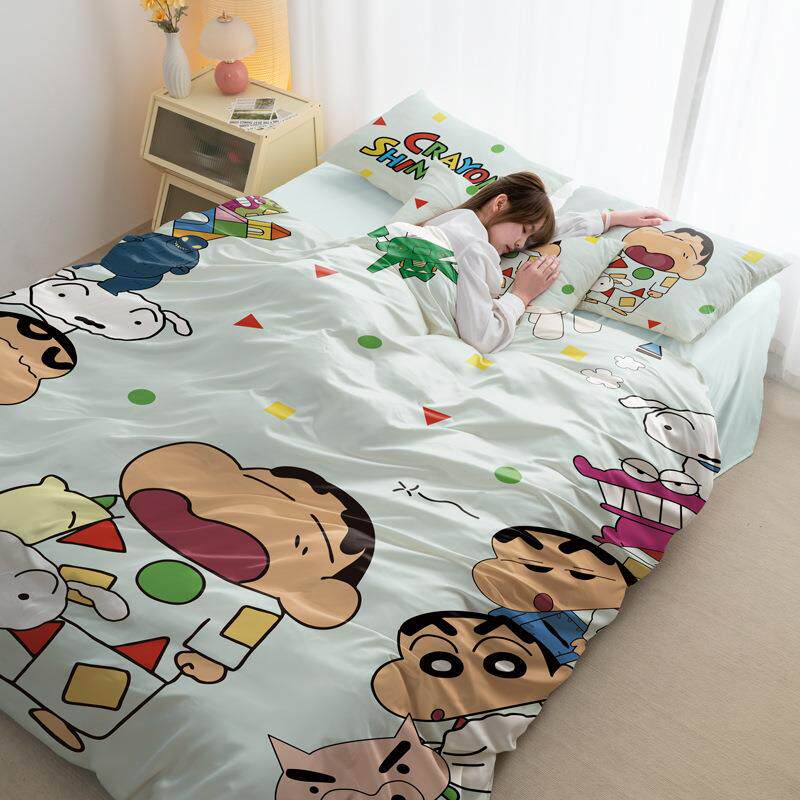 日式蜡笔小新冰丝四件套冰凉感透气可机洗床品印花家居宿舍套装