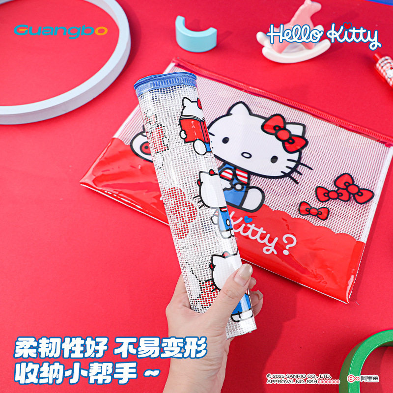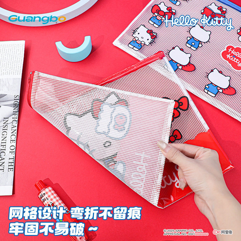 广博三丽欧凯蒂猫A4网格文件袋高颜值拉链袋学生文具书本收纳袋