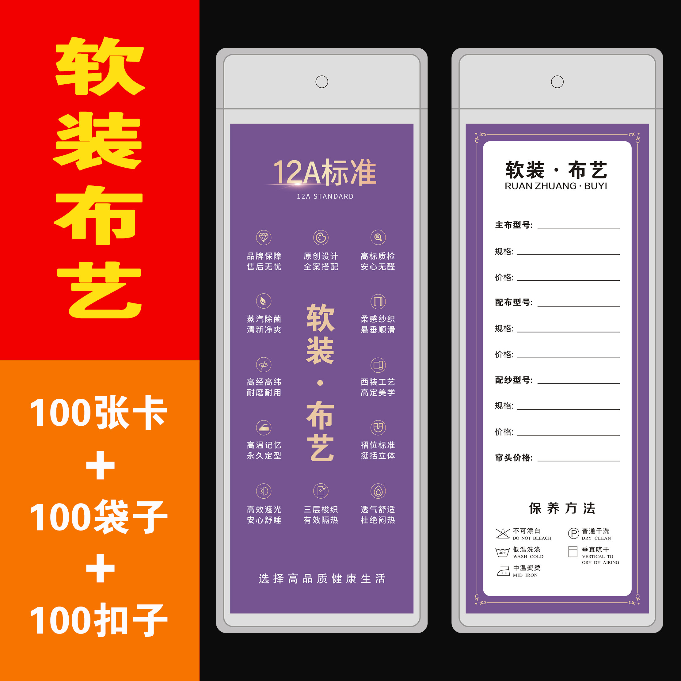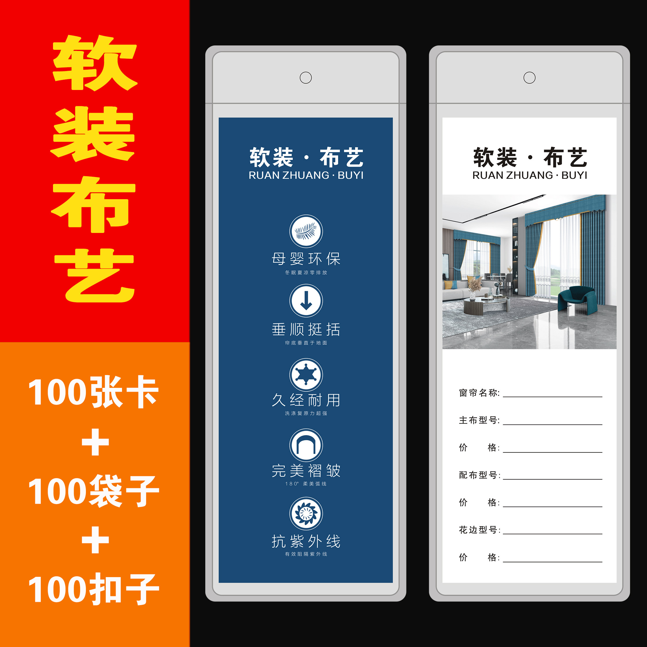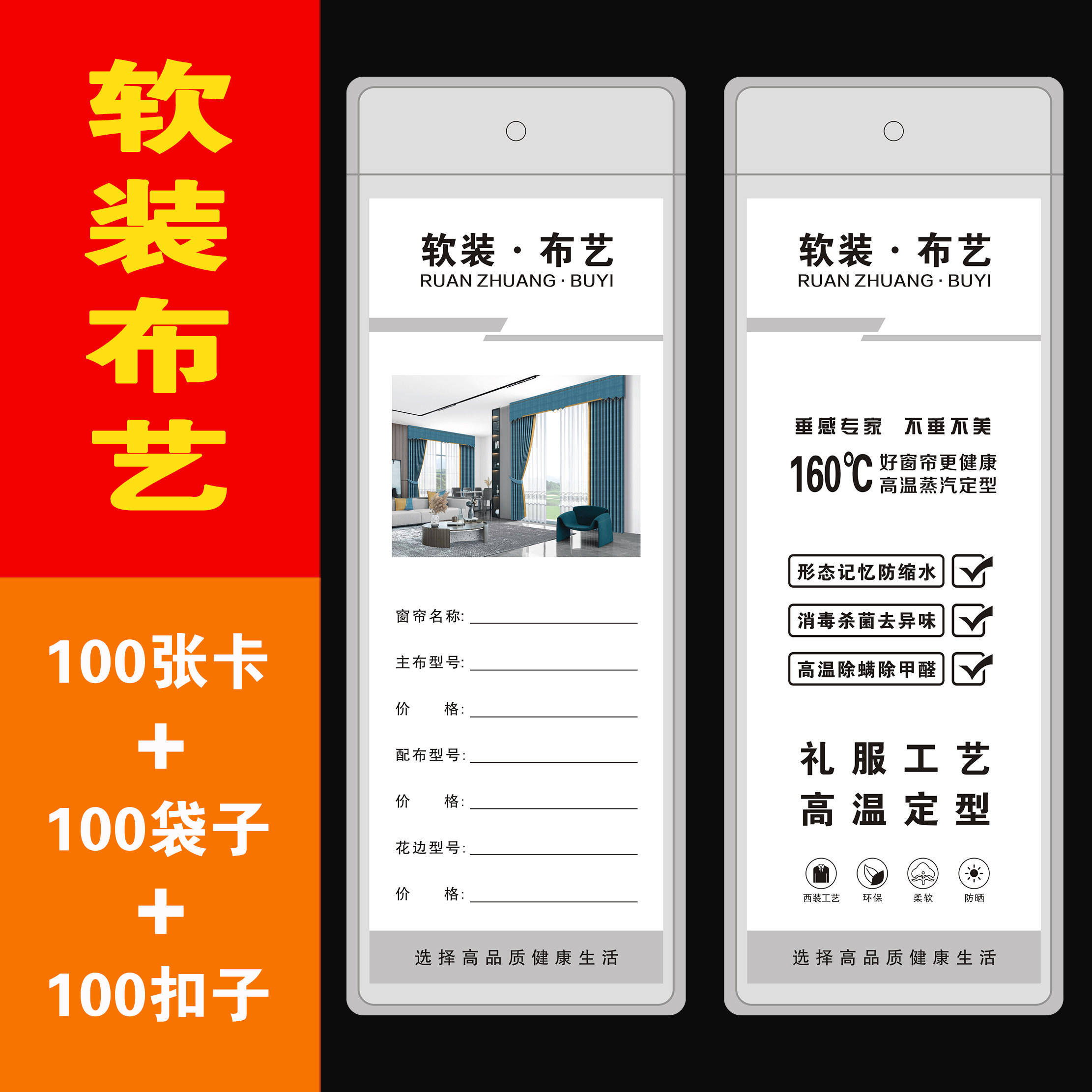 大卡窗帘吊牌定制高档窗纱帘价格标签牌软装布艺现货扣子挂牌纸卡