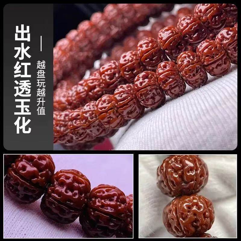 真品爆肉小金刚菩提手串双龙纹树王核桃文玩佛珠念珠盘玩男士手链