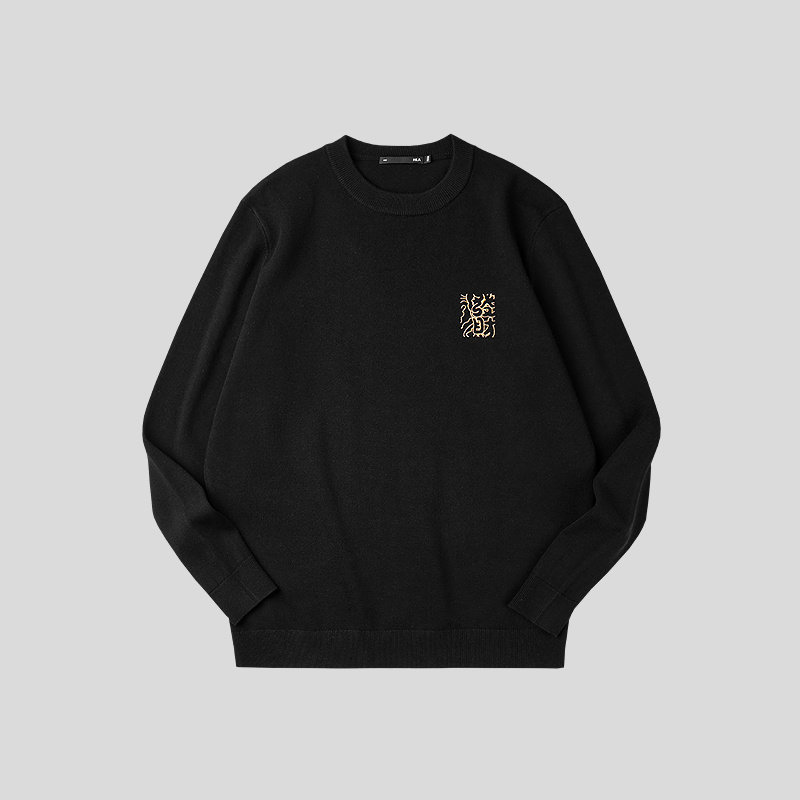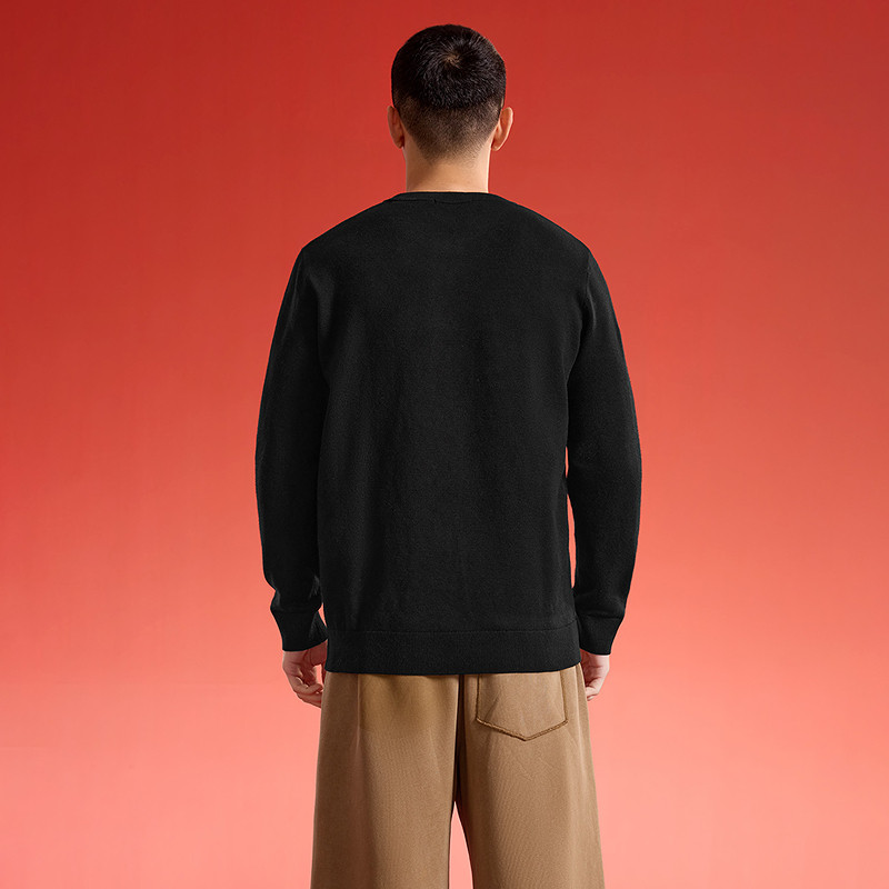 海澜之家马年贺岁大红色本命年针织衫2026春圆领绣花毛衣男