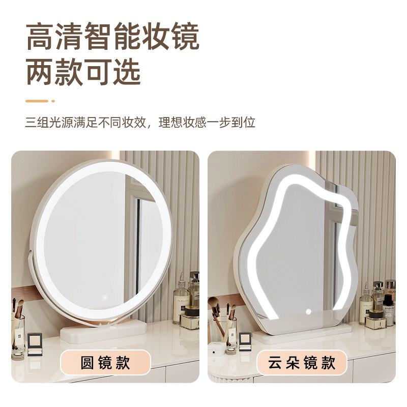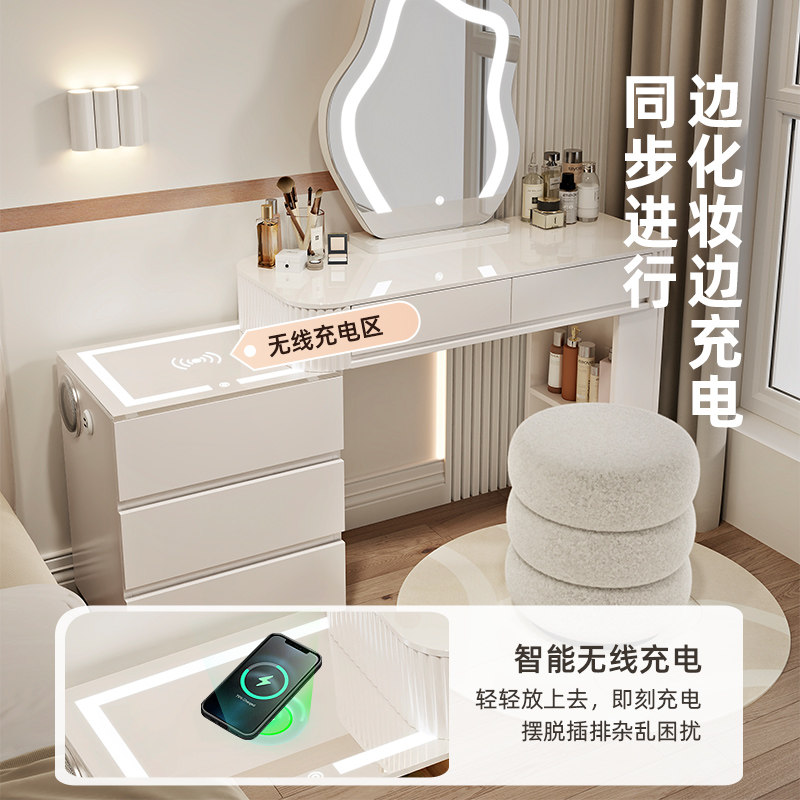奶油风梳妆台实木轻奢智能现代简约小型化妆桌2025新款卧室化妆台