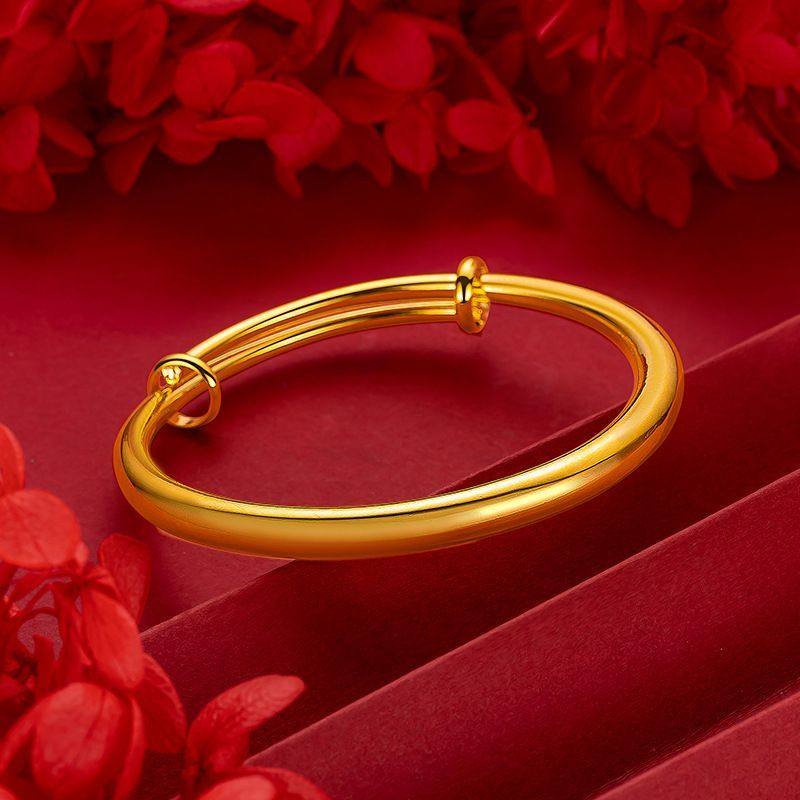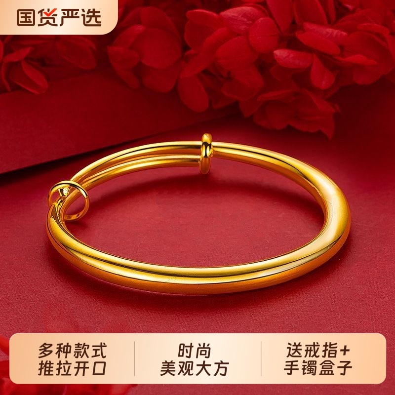 同款沙金手镯女款式推拉开口光面仿真金不掉色首饰品镯子镀金合金