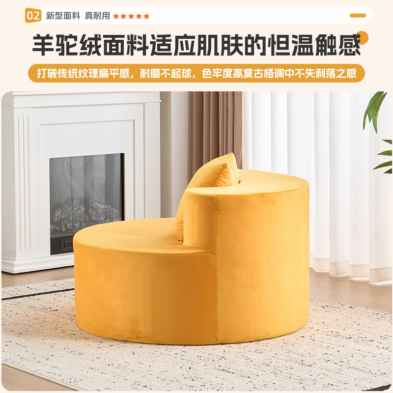 设计师创意绒面沙发简约圆弧形休闲沙发椅会客接待休息区布艺沙发
