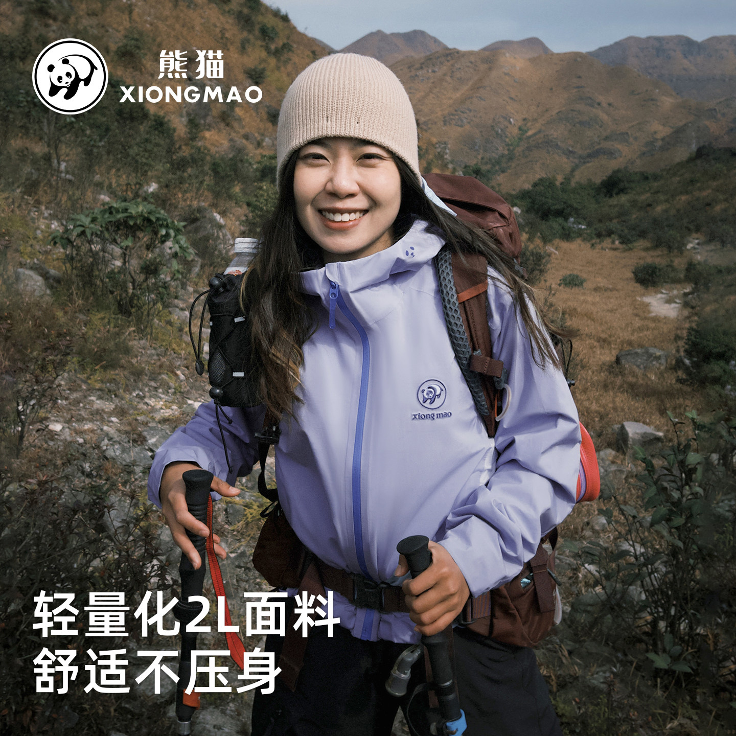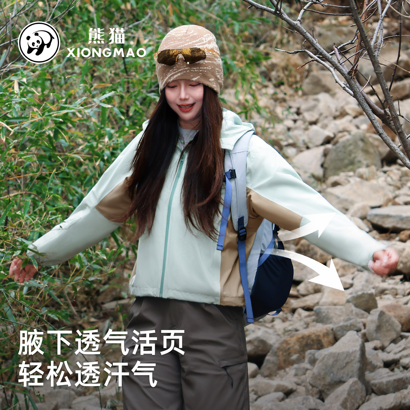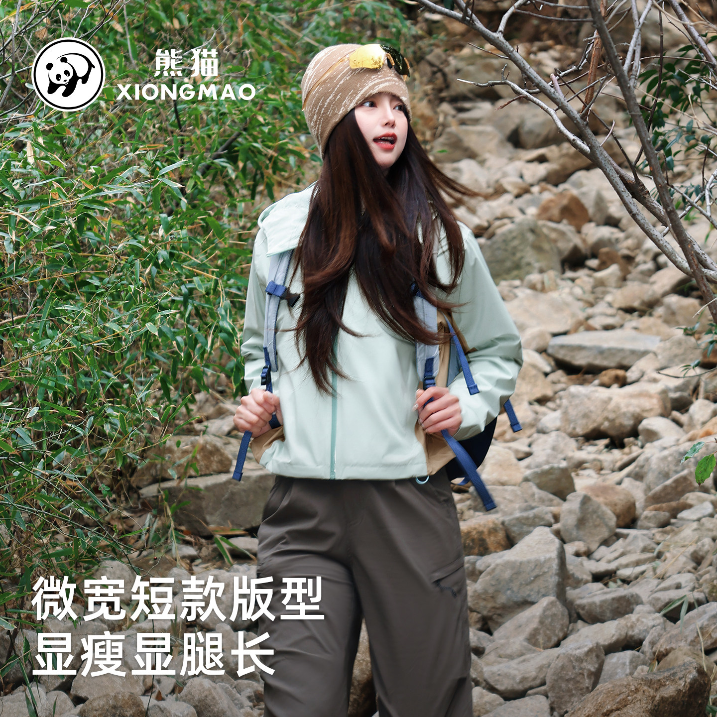 熊猫冲锋衣短外套女款2026新款轻量防风水运动户外旅行夹克风衣