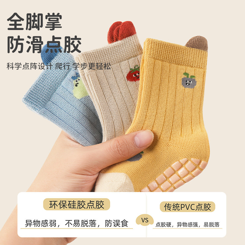 婧麒宝宝地板袜春秋冬棉袜室内隔凉儿童防滑袜子纯棉婴儿学步袜子