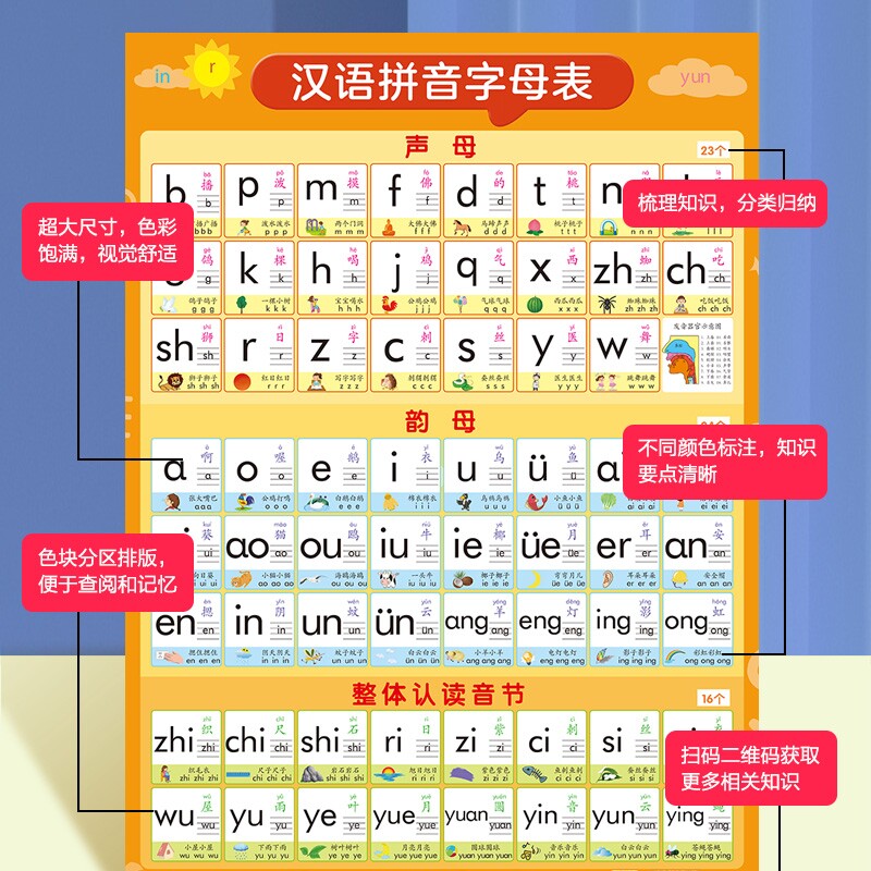 汉语拼音字母表墙贴挂图幼小衔接一年级声母韵母训练儿童学习神器