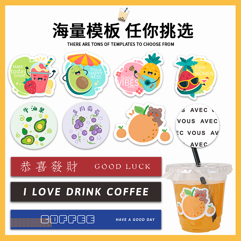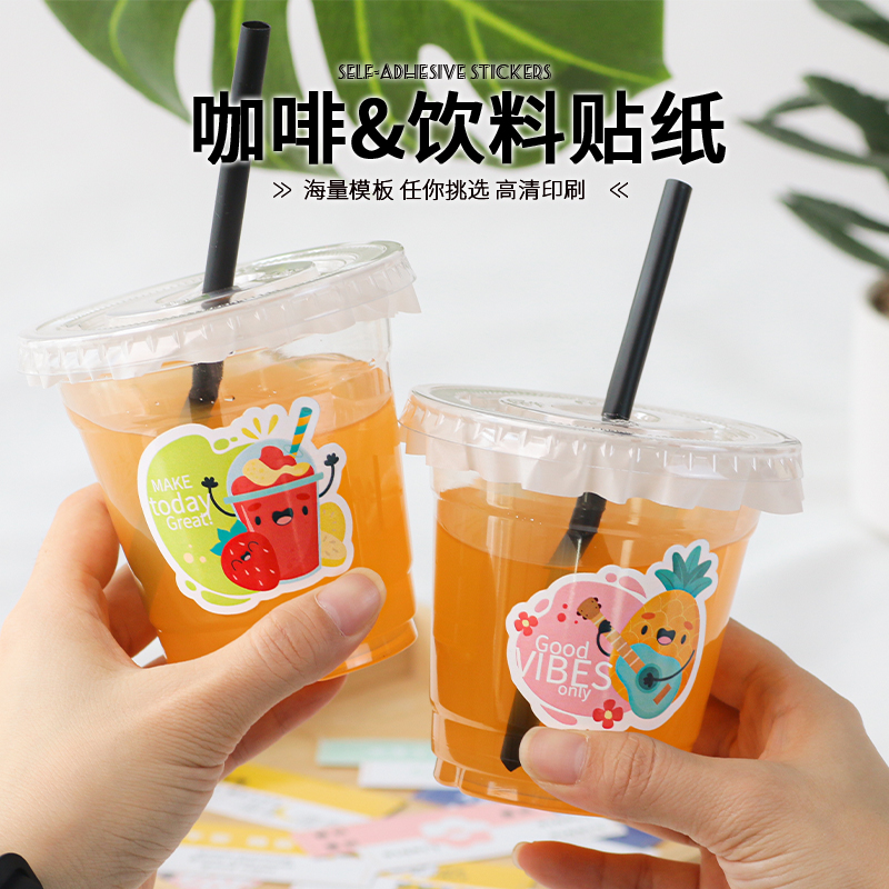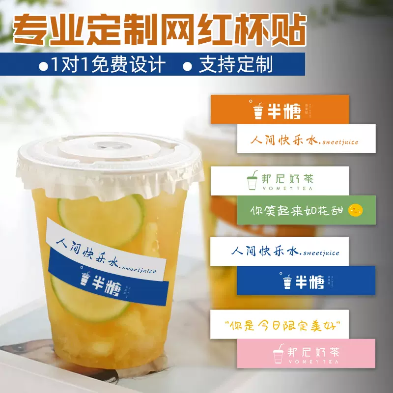 网红奶茶杯标签ins风长条瓶贴水果茶logo贴条饮料咖啡杯子一次性打包杯饮品瓶身标贴防水柠檬茶创意贴纸定制