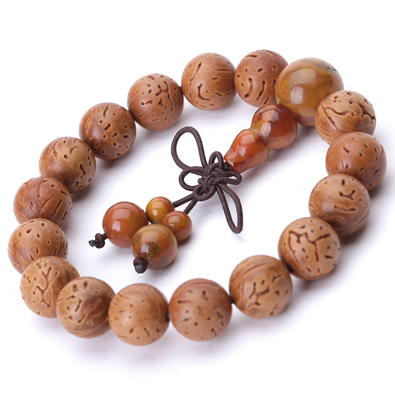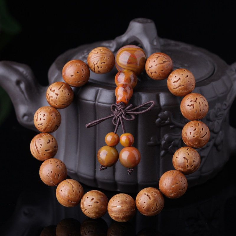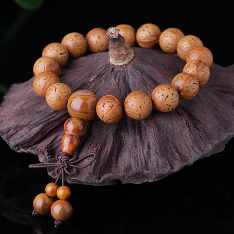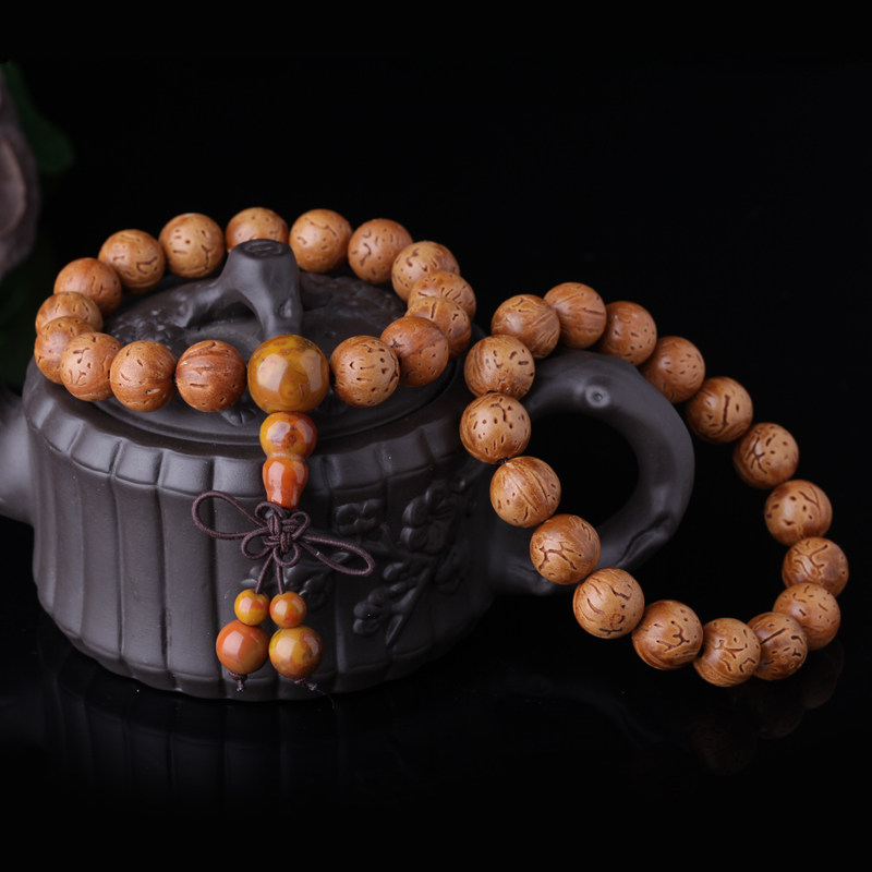 天然老桃核胡串手链女男款文玩把件手工打磨山正圆光珠脑纹山核桃