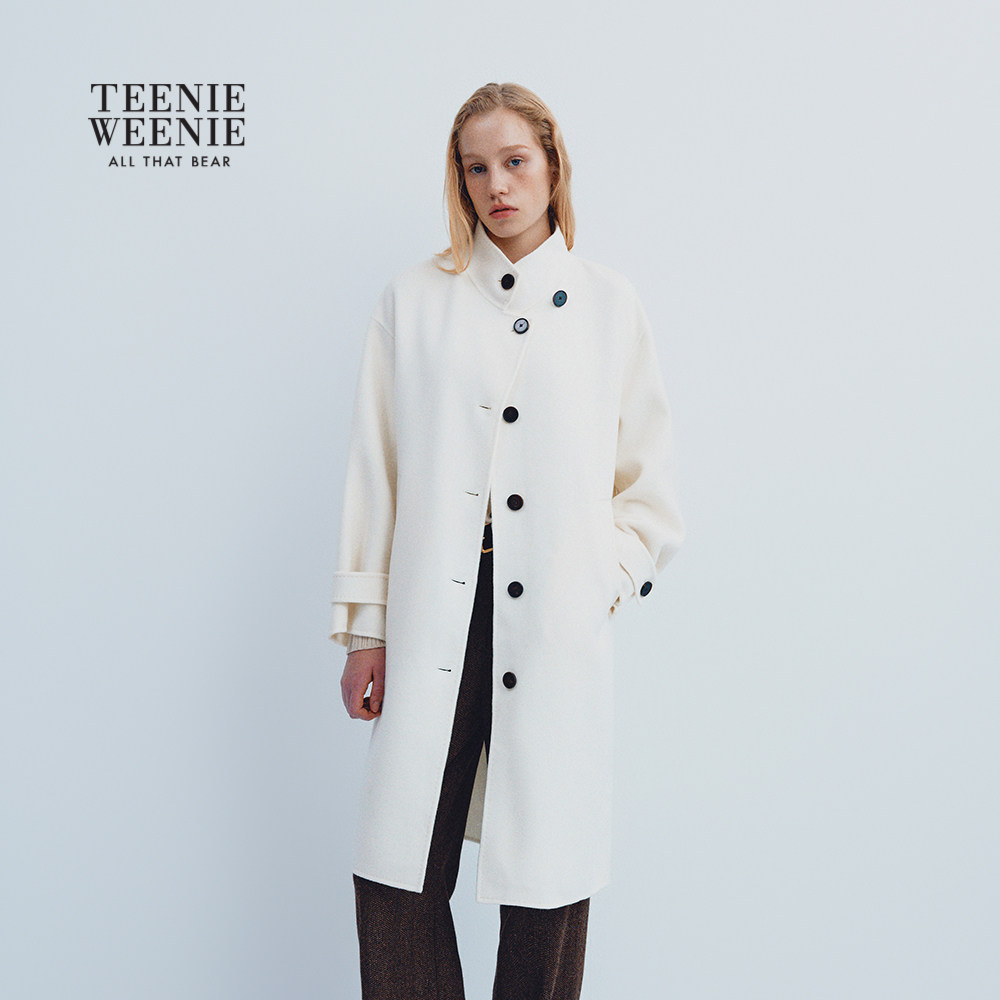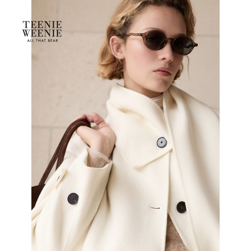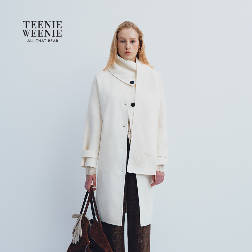 【轻绒智型通勤大衣】TeenieWeenie小熊女毛呢外套25冬可拆卸围巾
