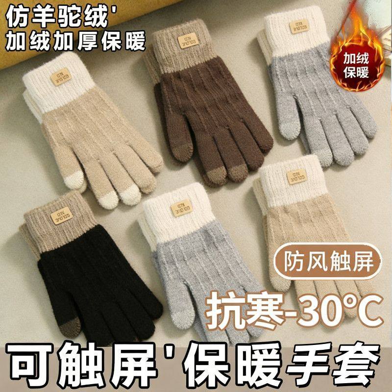 可触屏棉手套男士冬季保暖加绒加厚毛线针织骑行男女同款防寒手套