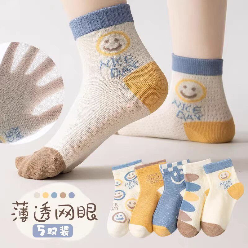 儿童袜子夏季薄款透气网眼袜男童女童宝宝小孩冰丝船袜中筒轻薄