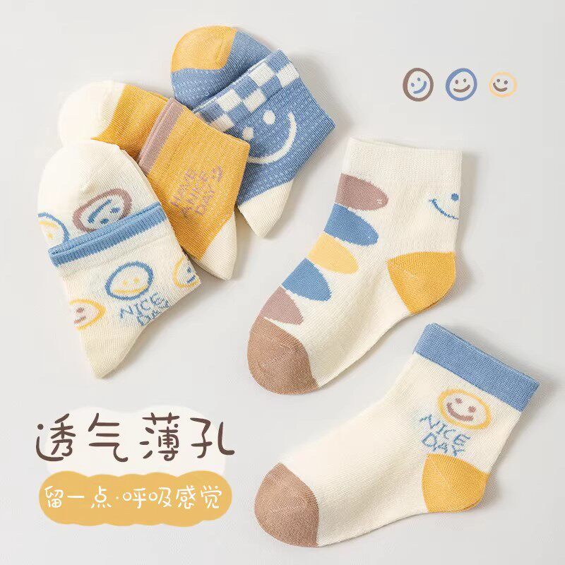 纯棉童袜春秋款夏季薄款防臭不起球男女袜子全棉中筒袜时尚儿童袜