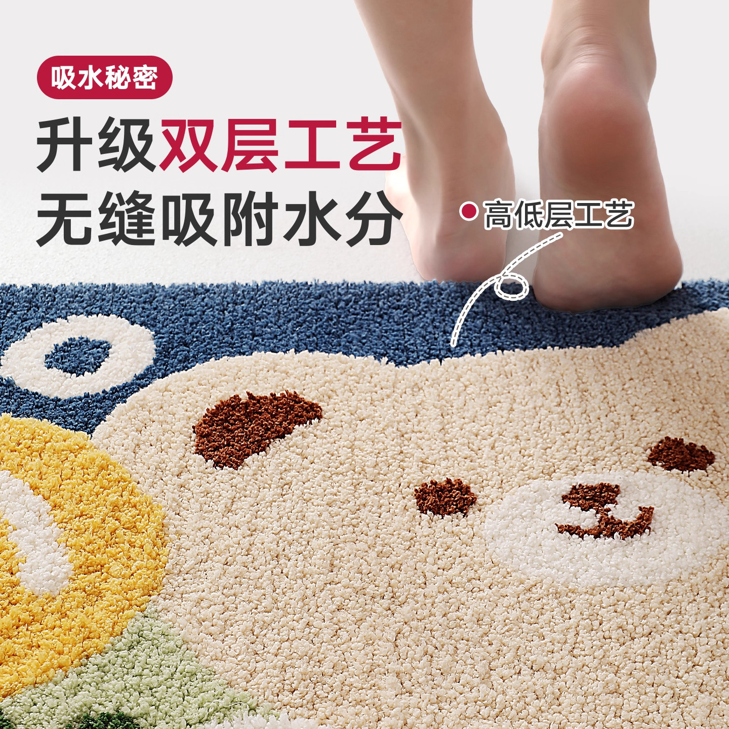 【李佳琦直播间】ComiComi水豚TATA卡通浴室地垫卫生间吸水防滑