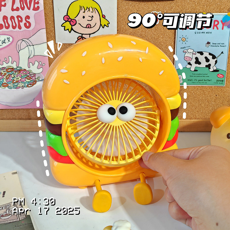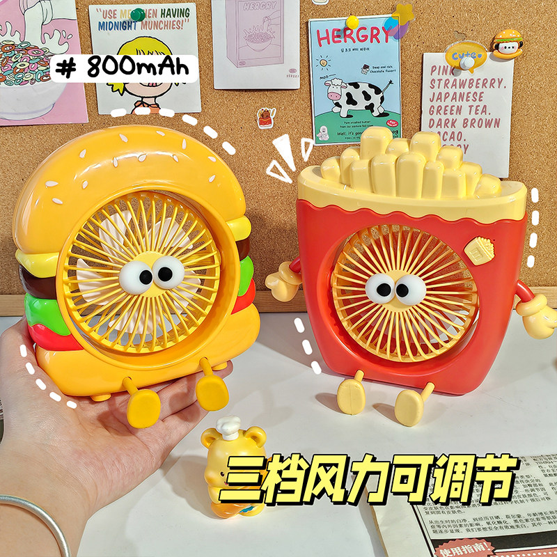 汉堡薯条静音送风萌物乐园可爱卡通桌面摆件USB迷你便携小风扇