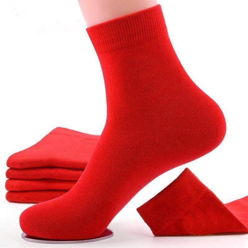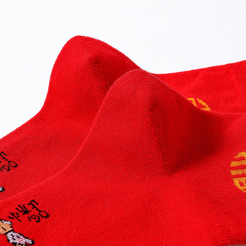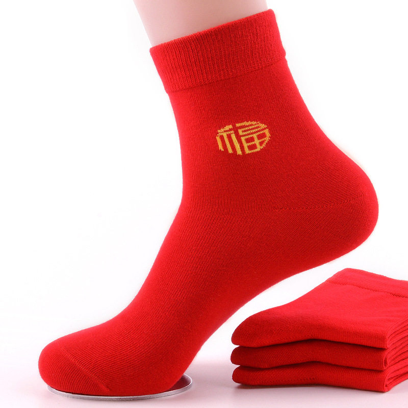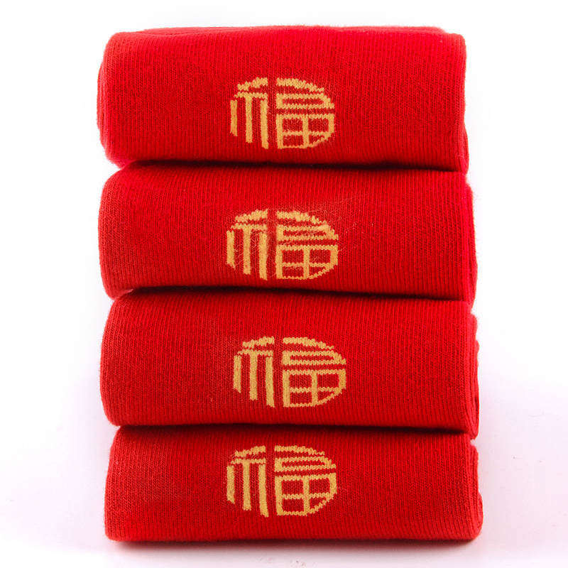红袜子本命年红色喜庆福字秋冬结婚情侣中筒袜男女通用款大红袜子