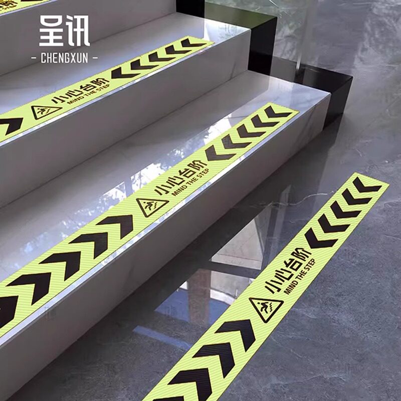 小心台阶地贴夜光台阶提示牌楼梯台阶防滑贴夜光小心地滑防水指示贴户外上下楼梯注意台阶坡道当心滑倒标识牌