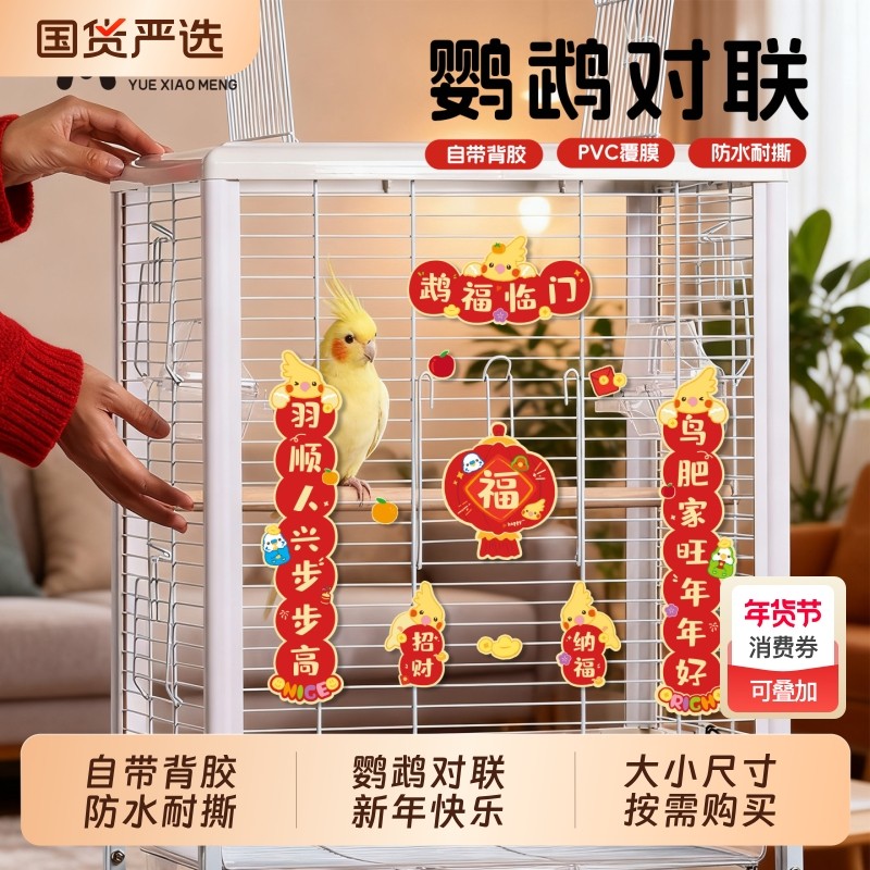 悦小萌新款鹦鹉对联虎皮牡丹玄凤春联宠物笼创意福字贴纸2026马年