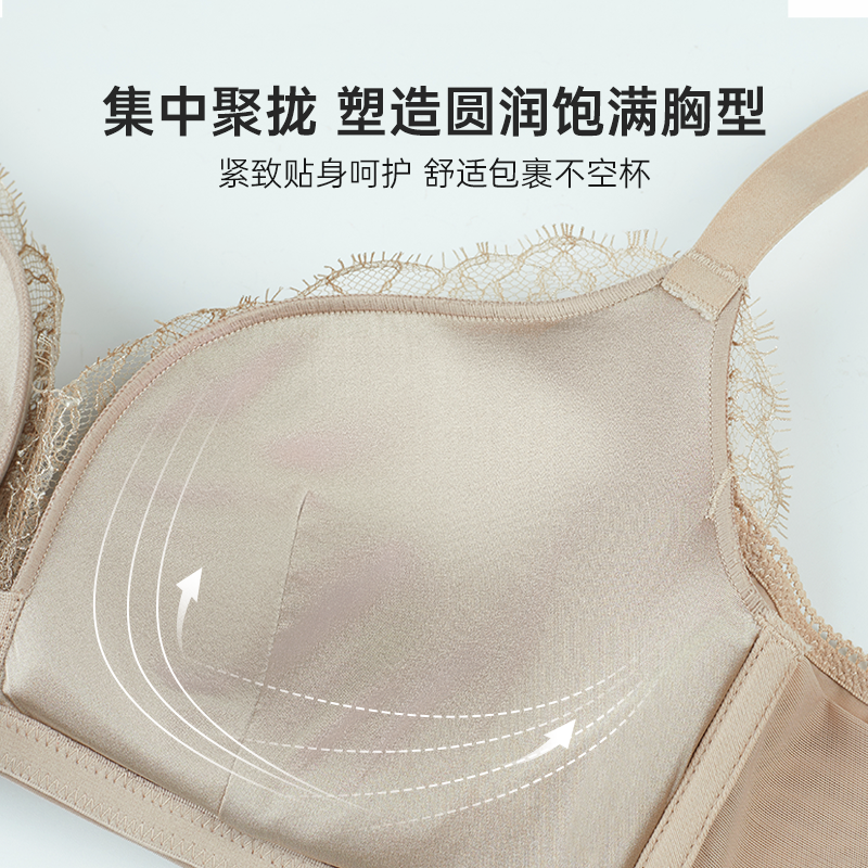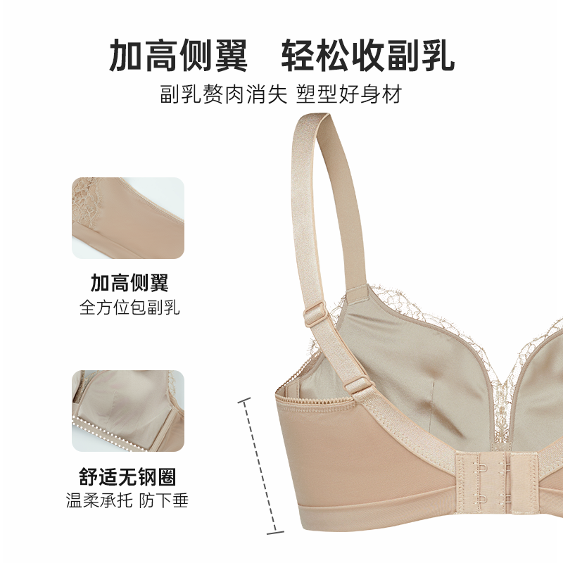 润微提拉女王内衣女大胸显小无痕大码调整防下垂收副乳粉底液文胸