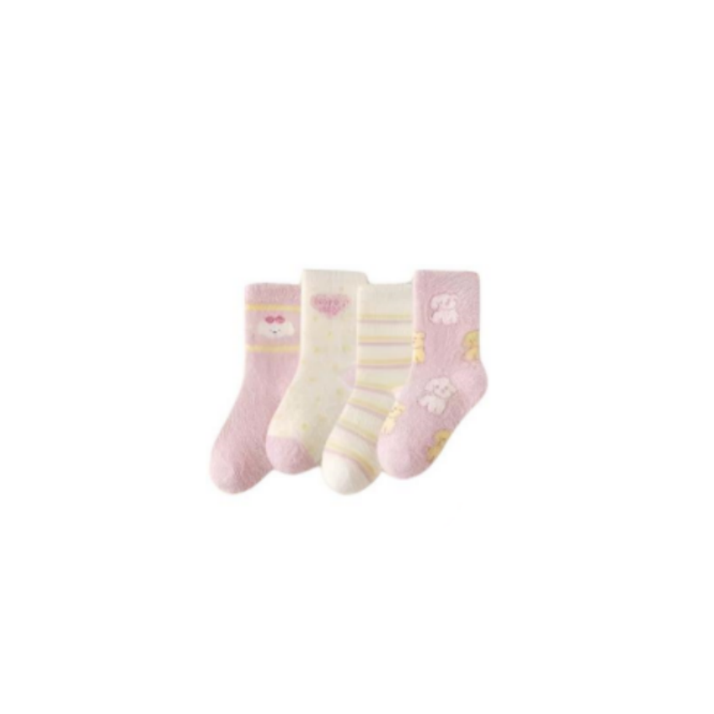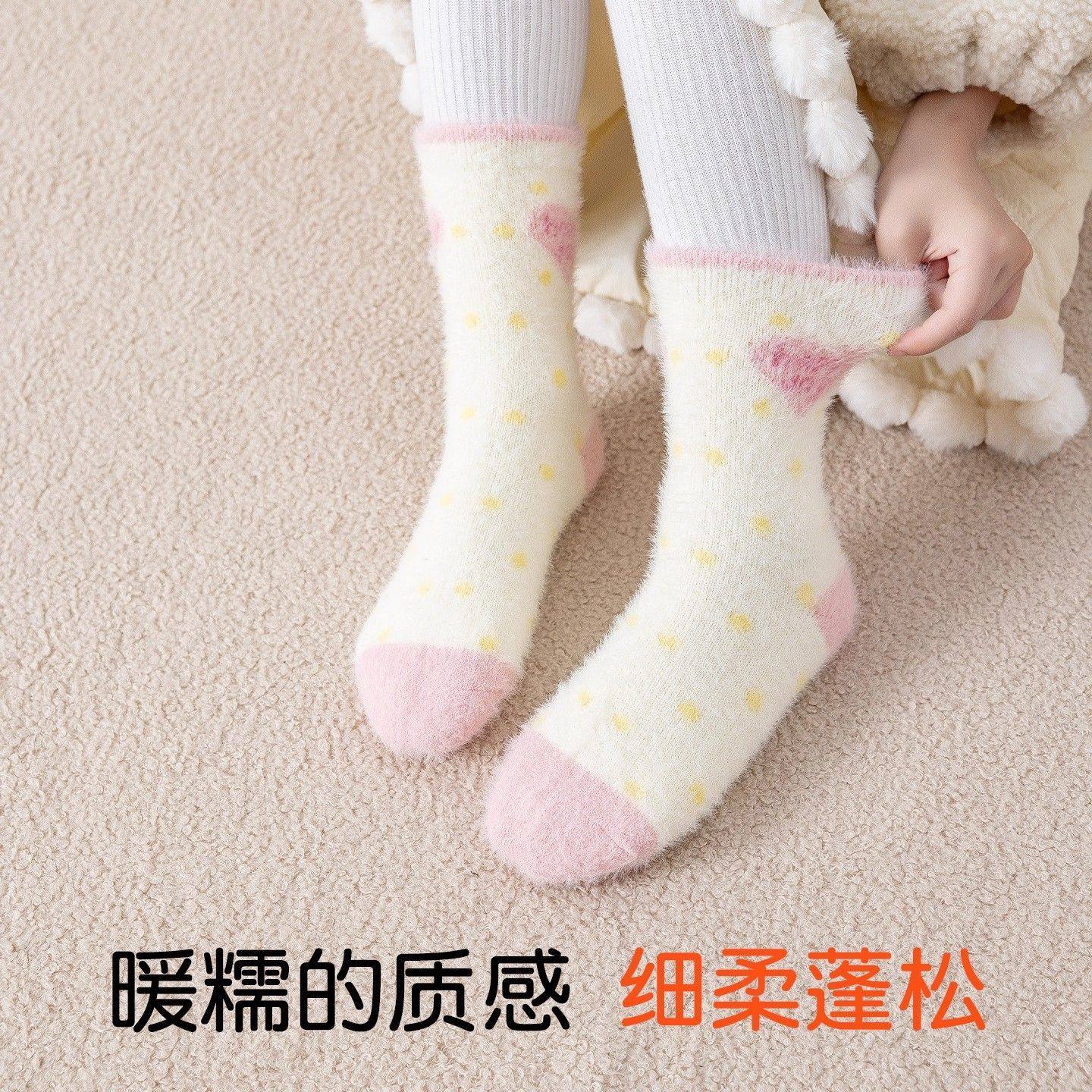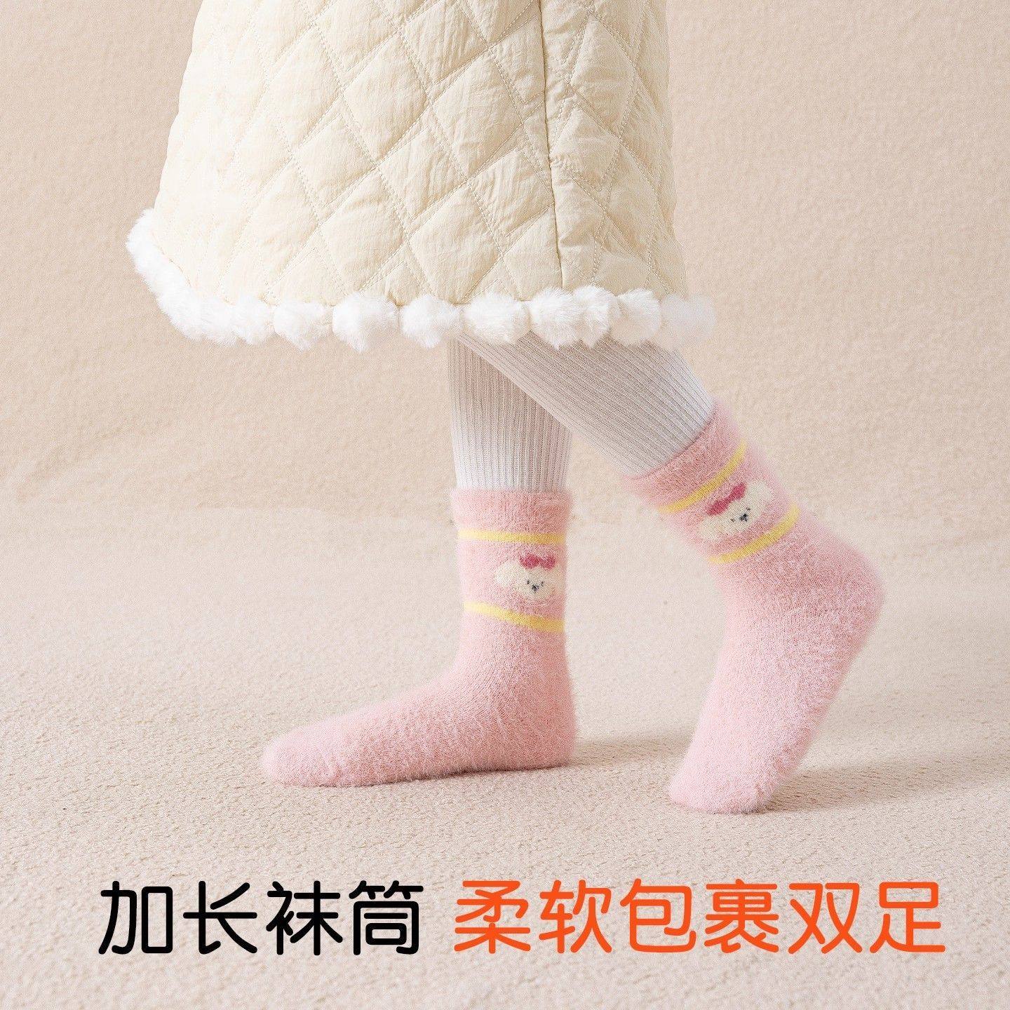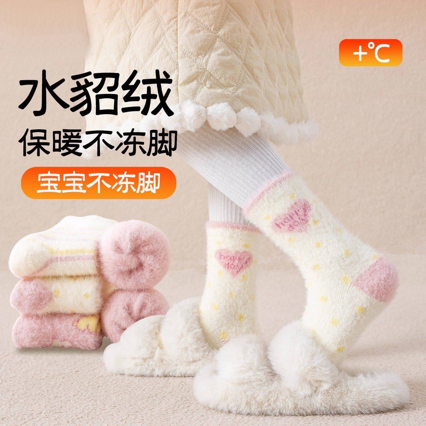 女童秋冬季可爱冬款加绒卡通水貂绒粉色中筒袜儿童加厚保暖多规格