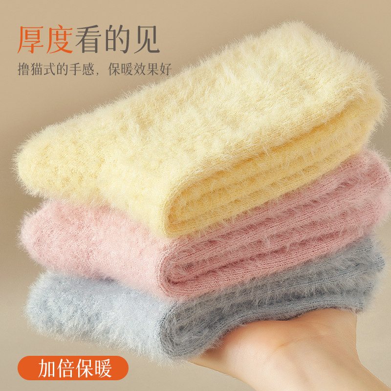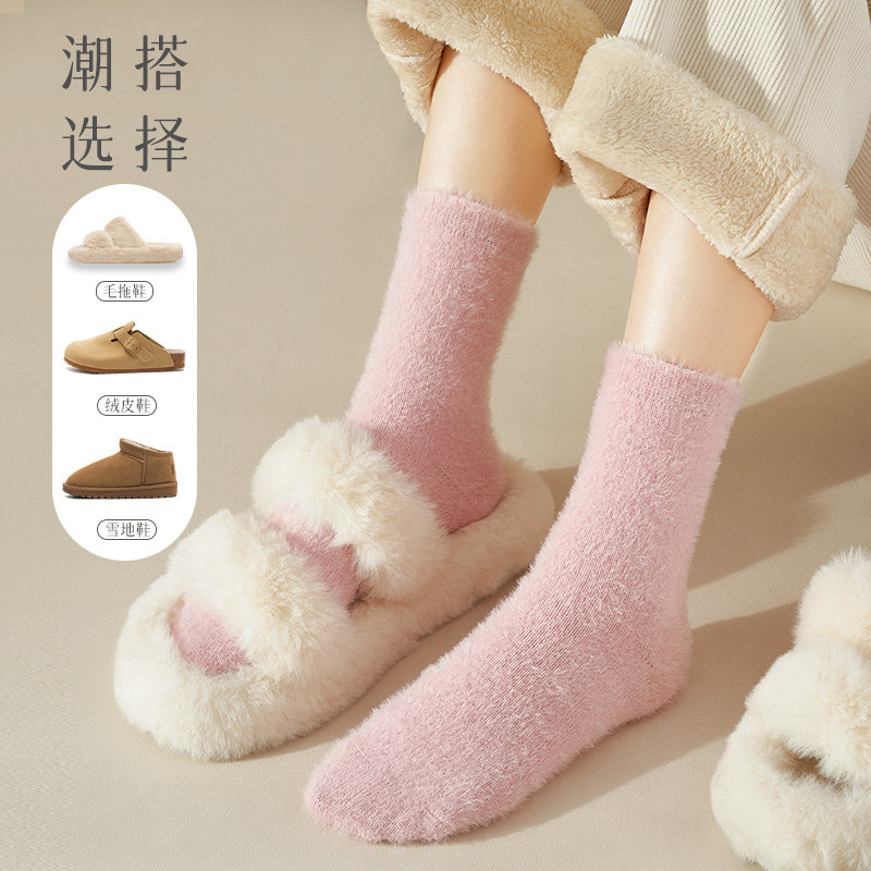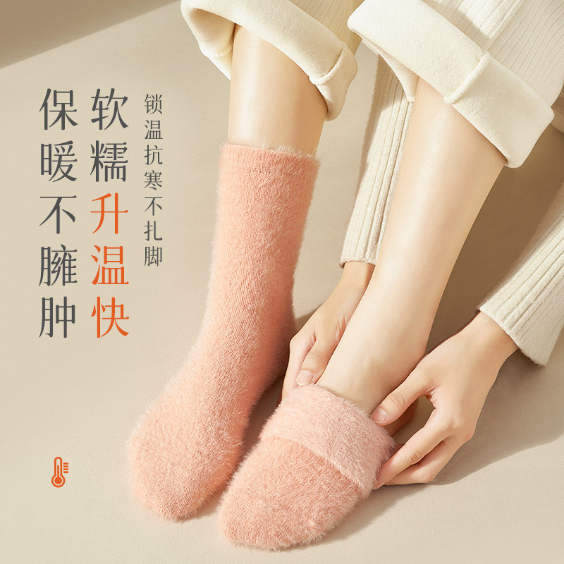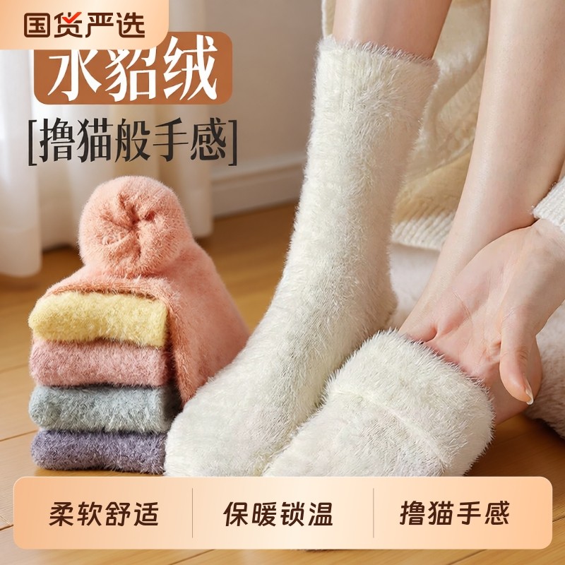 水貂绒袜子女秋冬季保暖中筒加绒加厚地板长袜毛毛睡眠袜雪地抗寒