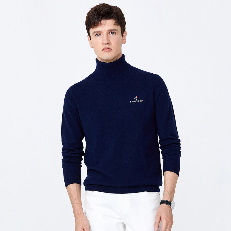 Navigare意大利小帆船圆领羊毛衫男100纯羊毛冬季毛衣休闲针织衫