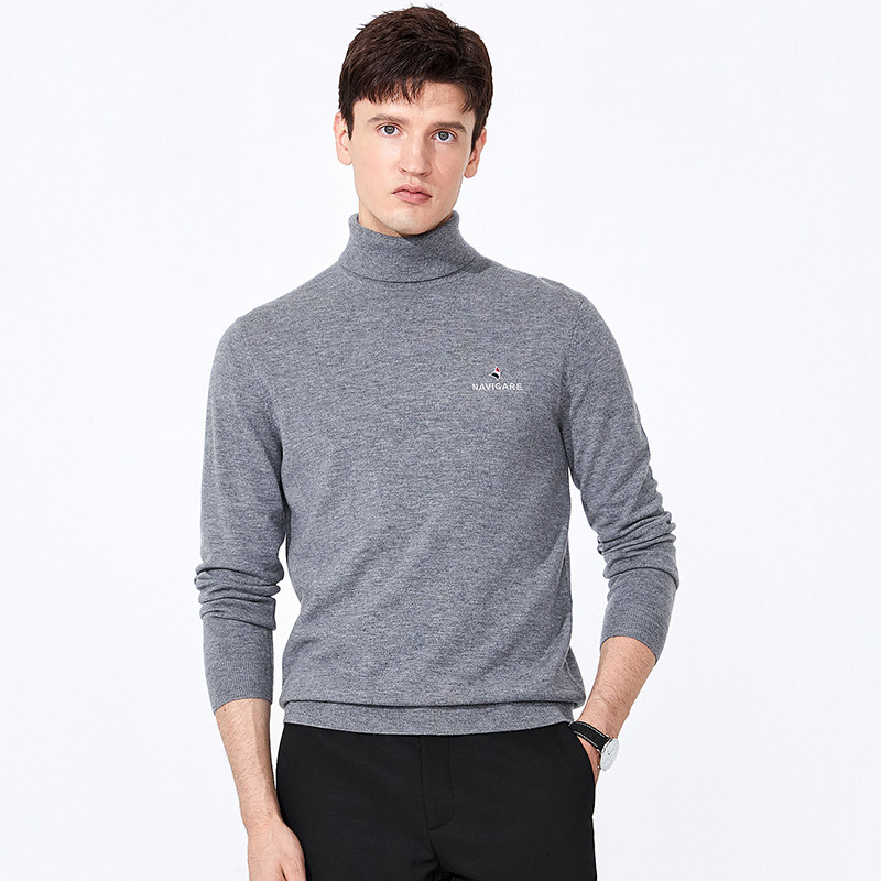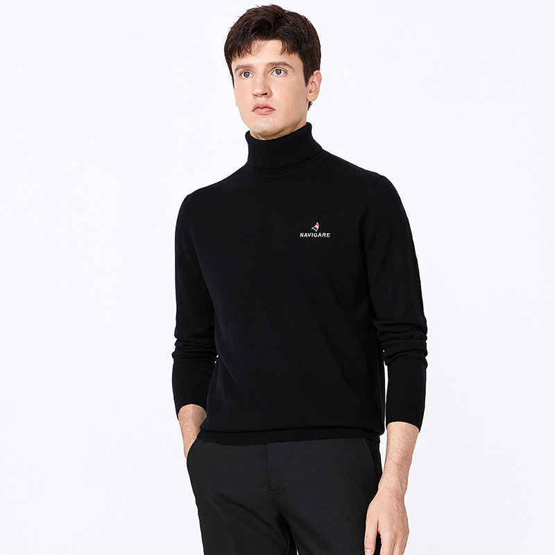 鄂尔多斯市半高领100%纯羊毛衫男休闲中厚保暖毛衣针织打底羊绒衫
