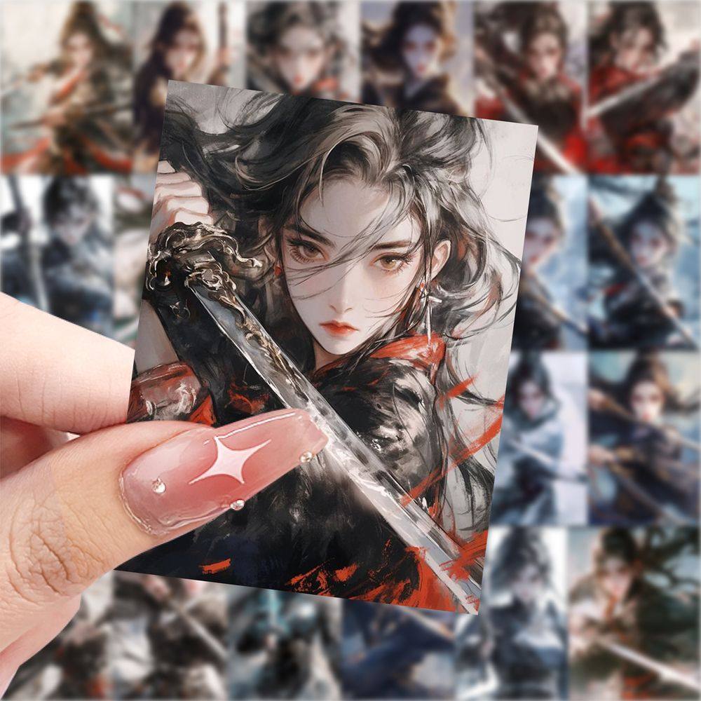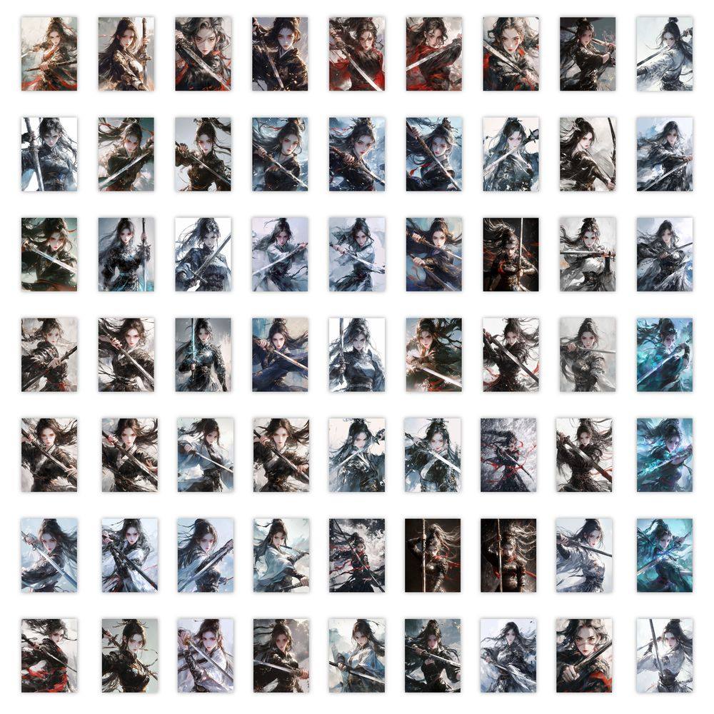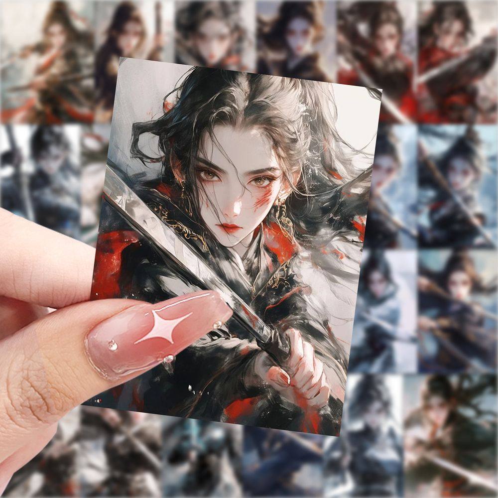 63张古墨风女将军贴纸欧美风复古人物贴画装饰手机壳电脑手账贴画