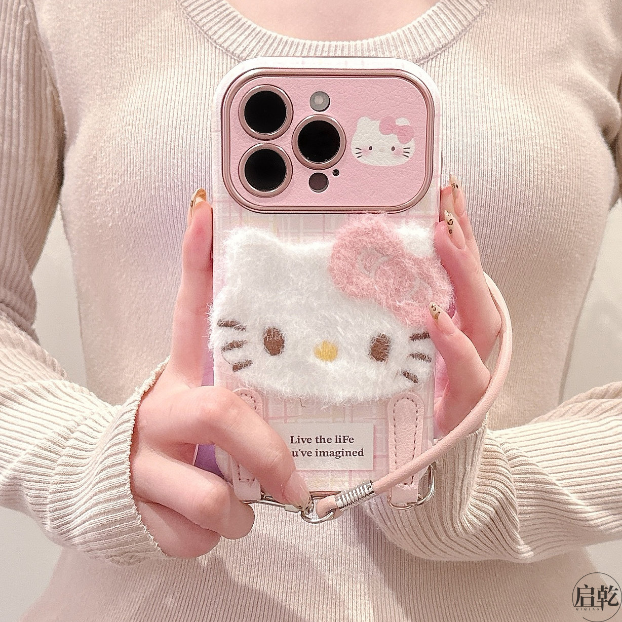 启乾 粉色格纹立体猫咪iPhone17/16手机壳适用苹果15/14promax皮质软壳少女心可爱新款秋冬可爱卡通日韩女款