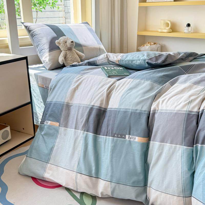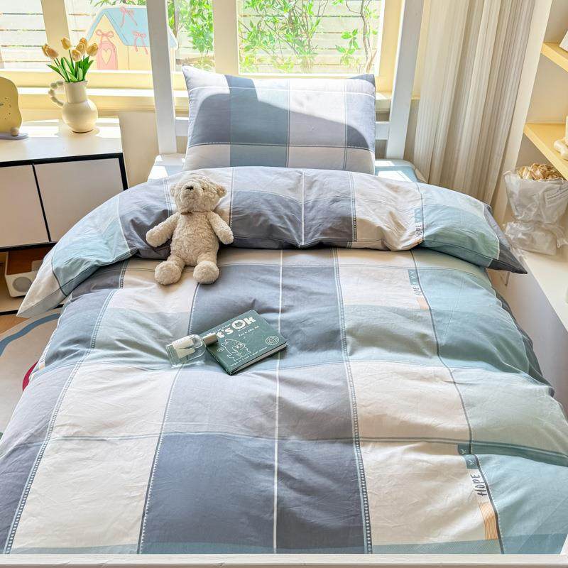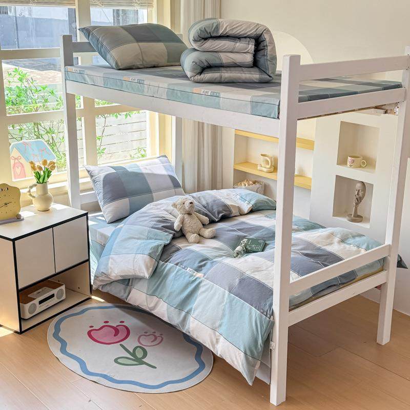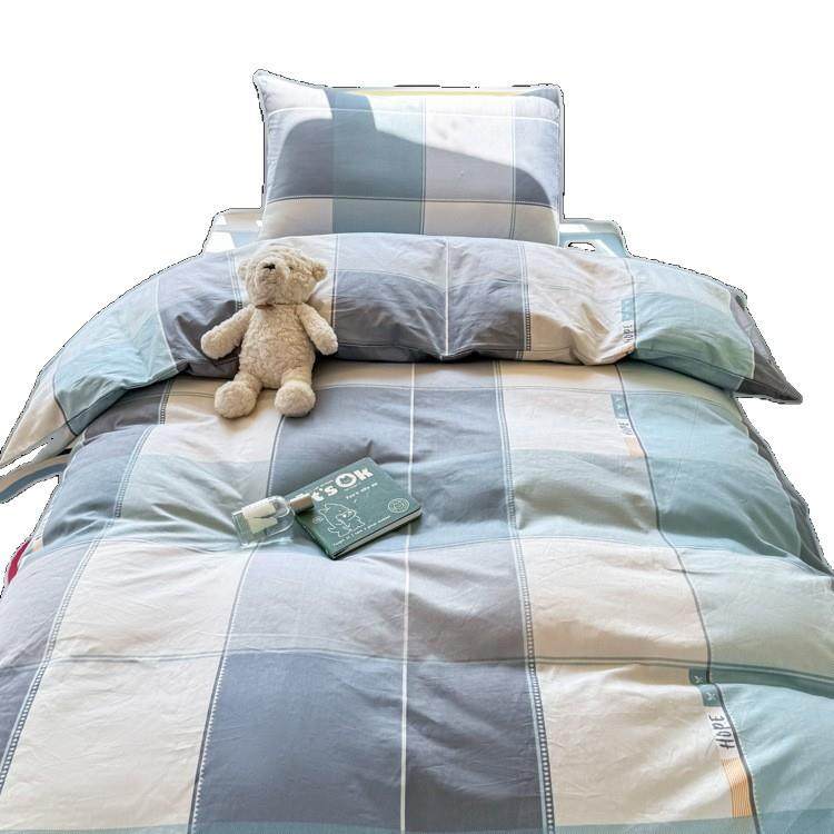 简约纯棉学生三件套宿舍上下铺全棉格子印花床品套件寝室单人床