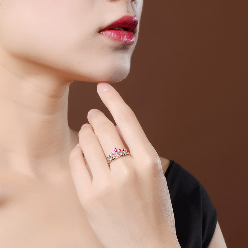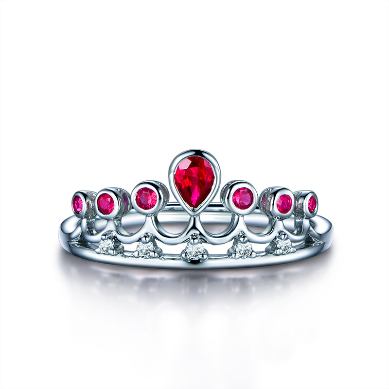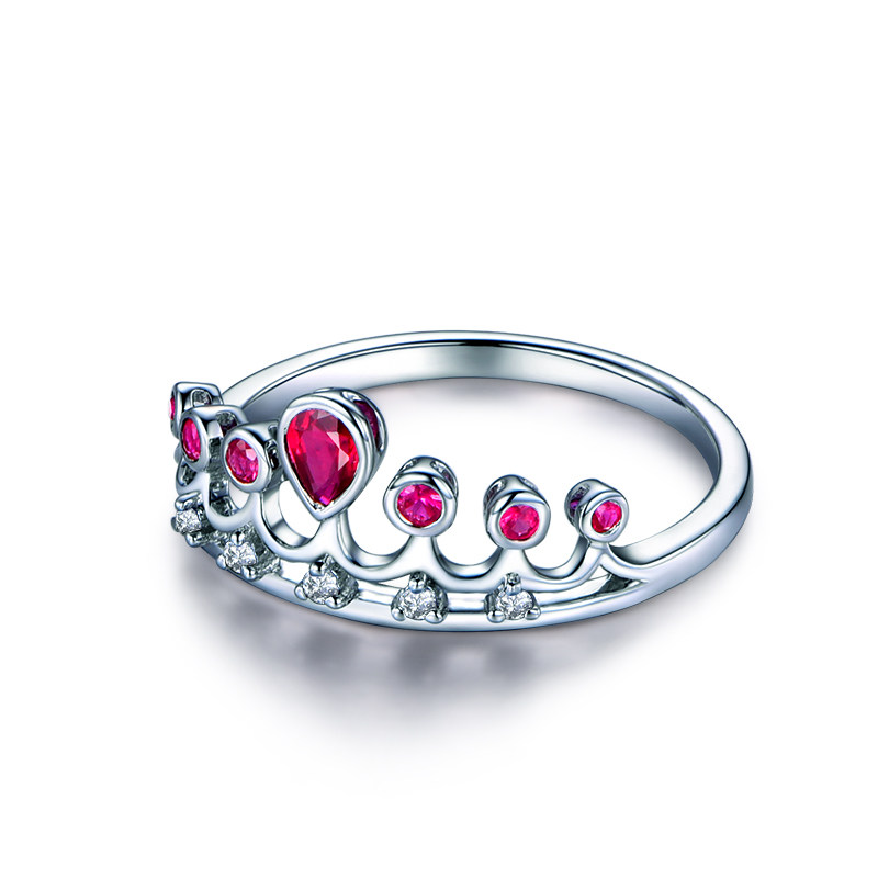 米莱珠宝 花冕系列 0.29克拉红宝石戒指 18K金皇冠 彩色宝石定制